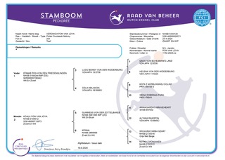 Vero is een dochter van Dido (Koala PonJoya) en Frenkie (Edmar Pon von den Friedenslinden). Haar ouders zijn niet alleen prachtig, maar vooral ongelooflijk lief en evenwichtig. We koesteren de wens om in de toekomst pups te fokken met dezelfde fijne eigenschappen.