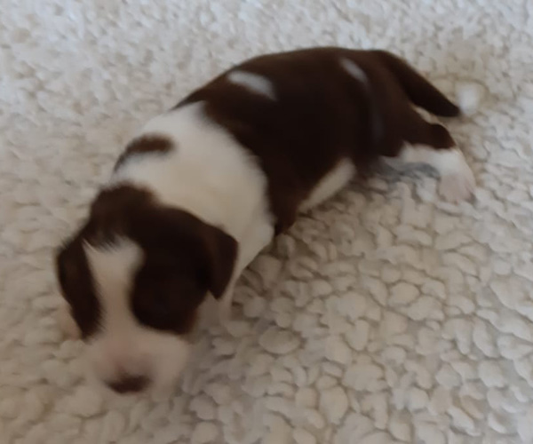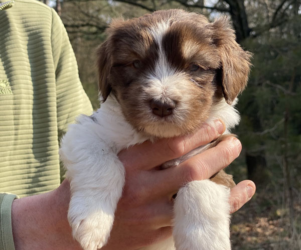 Woensdag 31 maart: De puppen beginnen steeds beter te lopen. Van kruipen naar lopen als een soort dinosaurus naar nu echt op 4 pootjes staan en lopen. We zullen een dezer dagen een rennetje voor ze neer gaan zetten dan krijgen ze meer ruimte om met elkaar te gaan verkennen.