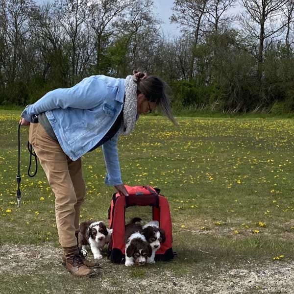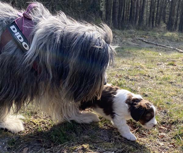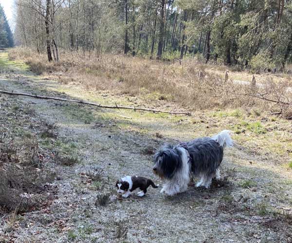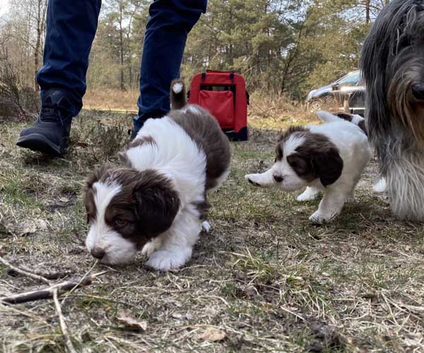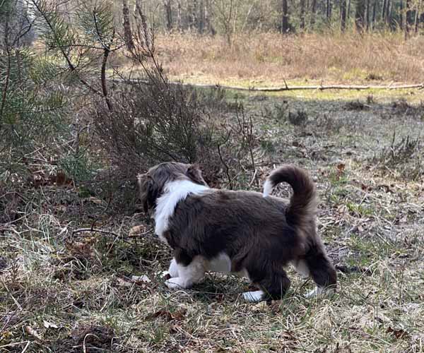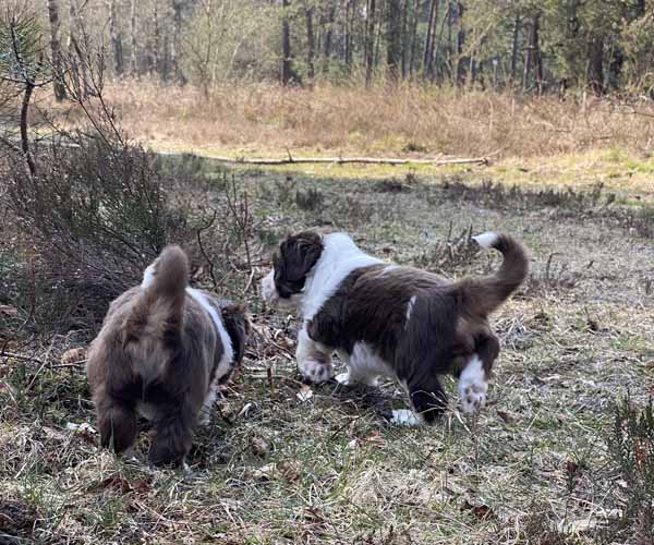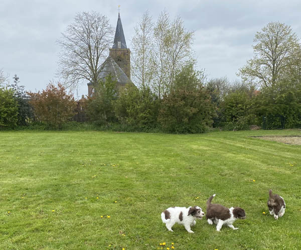 Zondag 18 april is een dag om door een ringetje te halen. De puppen gaan met mama Dido naar het bos. Wat zijn ze heerlijk zelfverzekerd en wat leuk om ze te zien verkennen