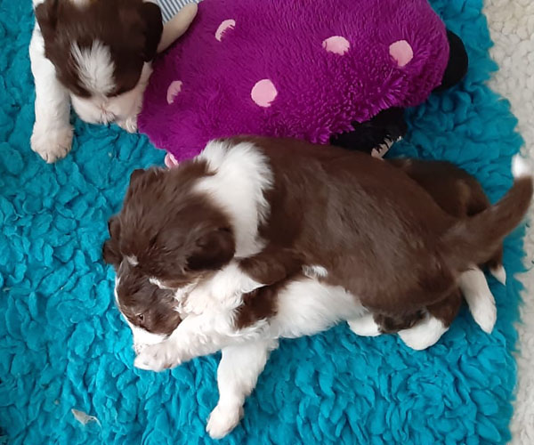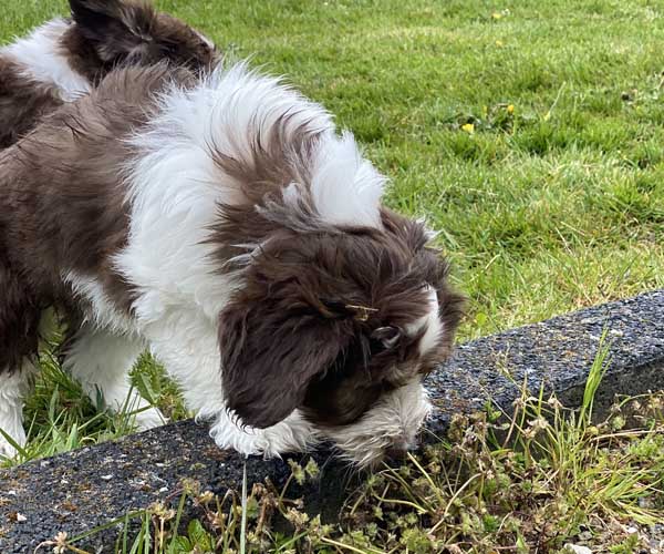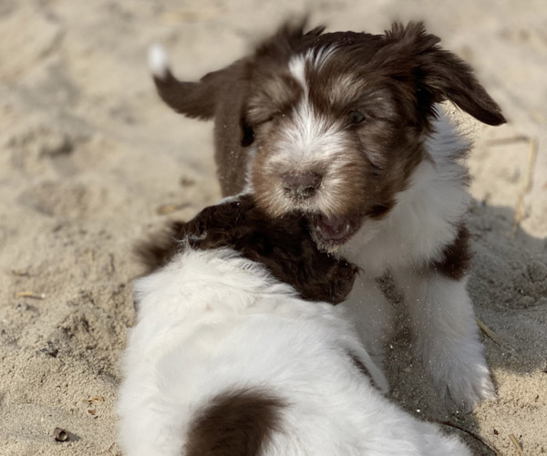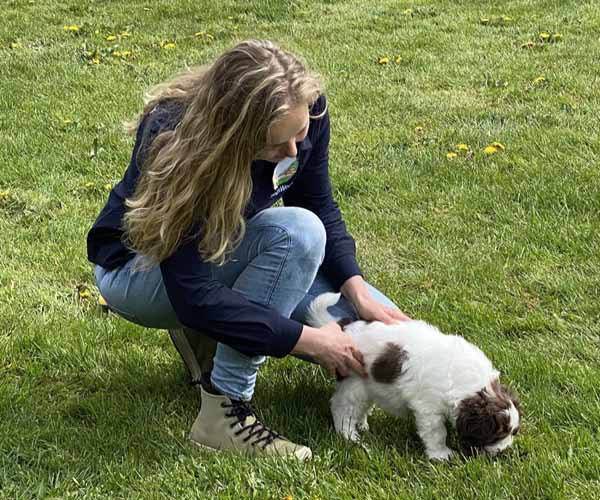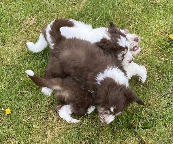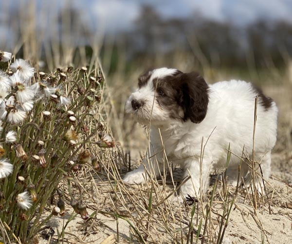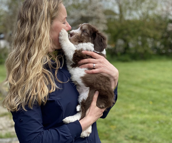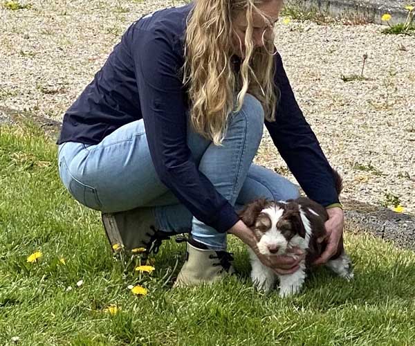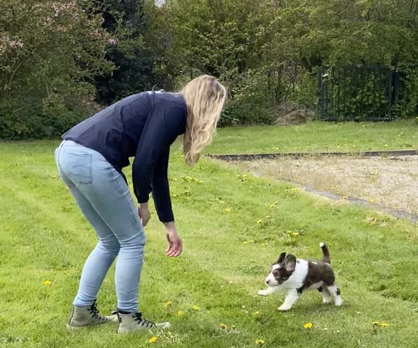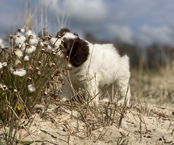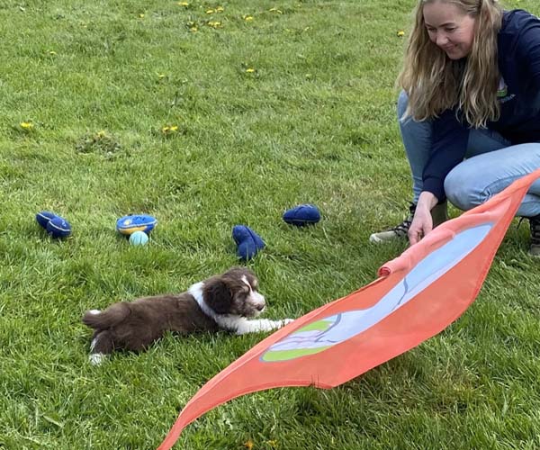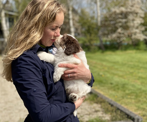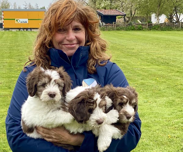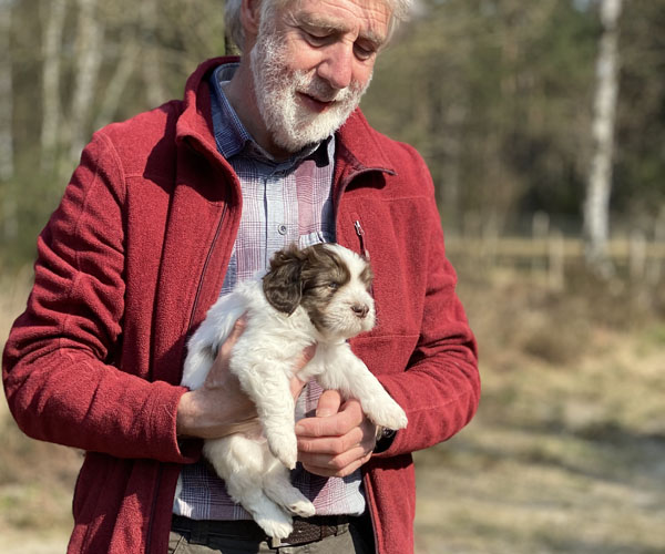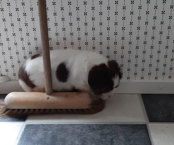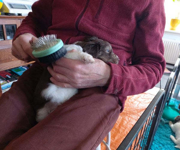 We borstelen de puppeduppen alvast regelmatig zodat ze goed gewend raken aan de vachtverzorging die straks nodig is. Uiteraard zorgen we ervoor dat de puppen het prettig vinden dus we gebruiken een hele zachte borstel en maken het tot een klein feestje.