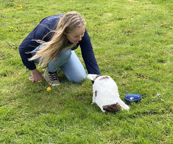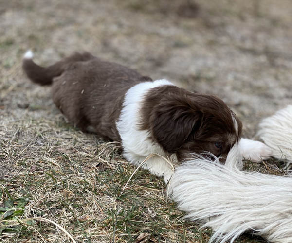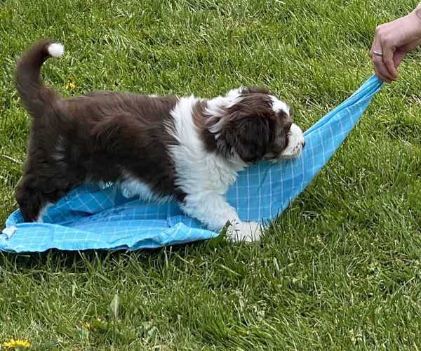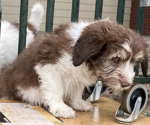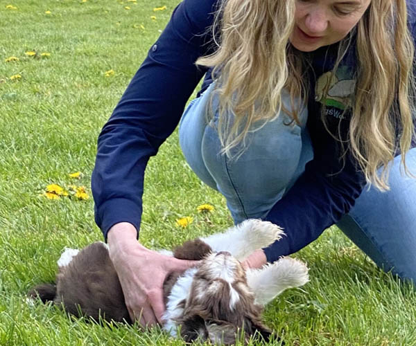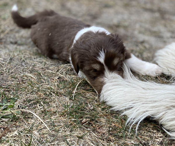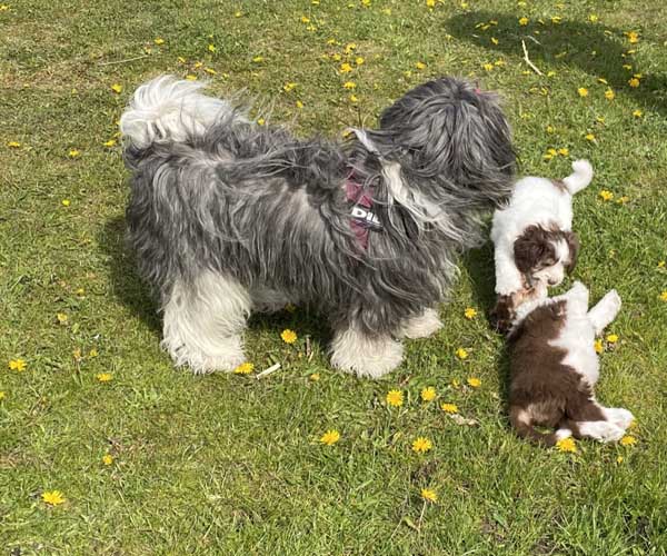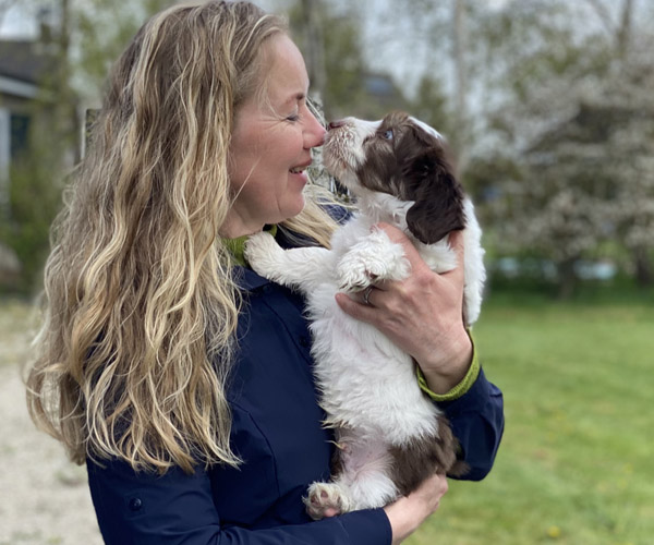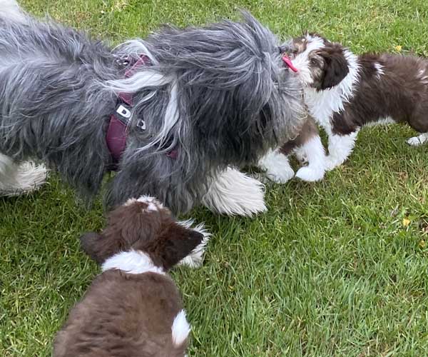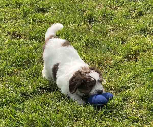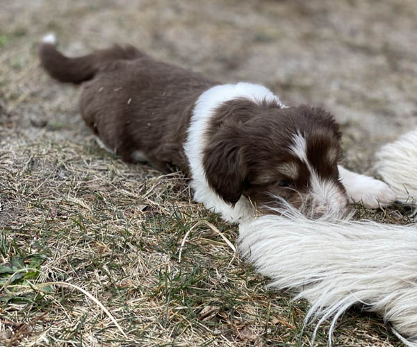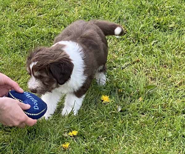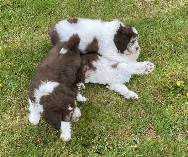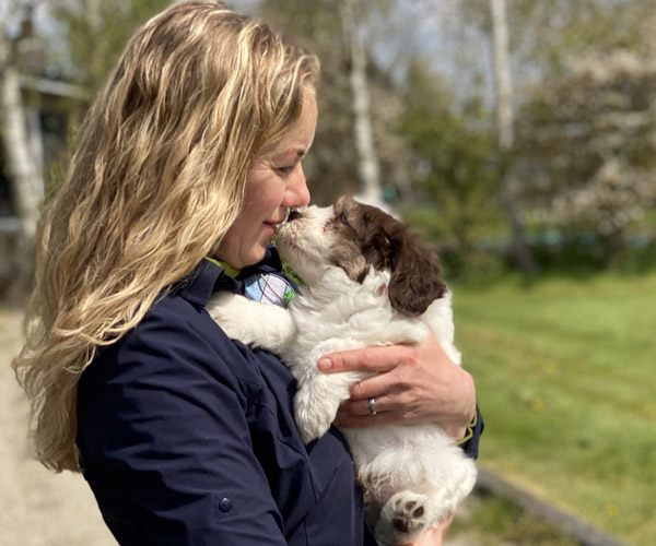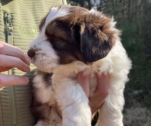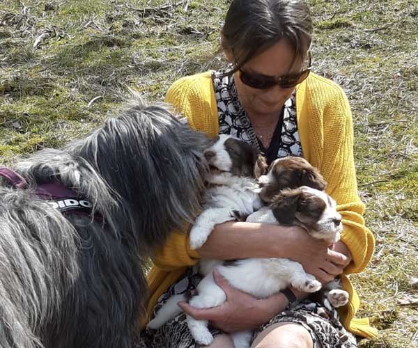 We borstelen de puppeduppen alvast regelmatig zodat ze goed gewend raken aan de vachtverzorging die straks nodig is. Uiteraard zorgen we ervoor dat de puppen het prettig vinden dus we gebruiken een hele zachte borstel en maken het tot een klein feestje.