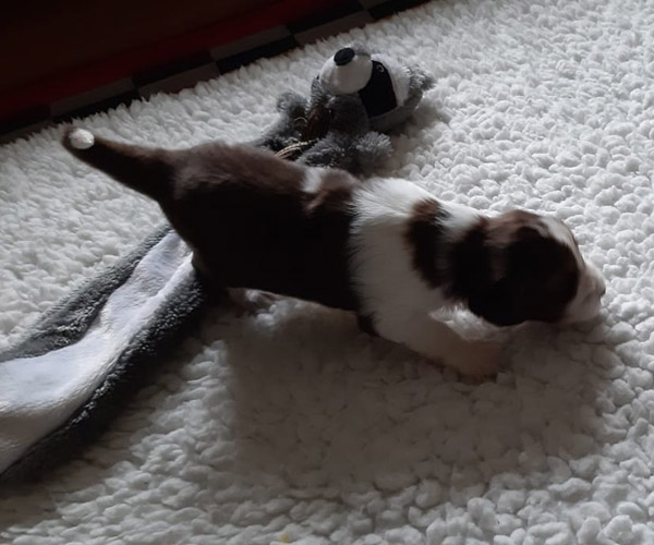 Donderdag 1 april: Fokken is niet altijd alleen maar feest. Vandaag is zeer plotseling en totaal onverwacht kleine Ernie (oftewel Ernieventje zoals hij door het gastgezin werd genoemd) overleden. Vanaf zijn geboorte had hij een lastige start en het gastgezin heeft alles op alles gezet maar helaas ging hij van een levendige pup in een paar uur naar een zieke pup en overleed hij heel snel. Rust zacht lief Ernieventje, voor altijd in onze harten!