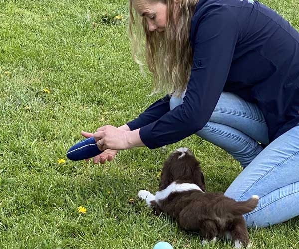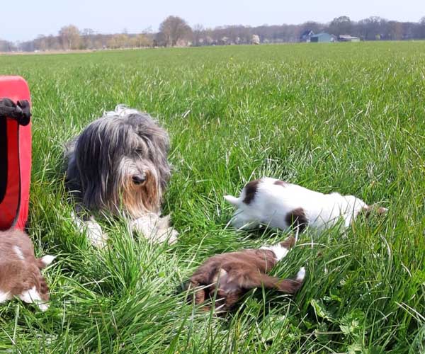Vrijdag 23 april: De puppen zijn inmiddels gechipt en maken dagelijks nieuwe dingen mee. Ballenbak, keuken, visite, weiland...... trots op dit geweldige gastgezin die deze puppen met zoveel liefde begeleid. De puppen kijken nu al nergens meer van op. Dido draagt zo af en toe een body zodat zij heerlijk kan spelen met haar puppen zonder dat de puppen de hele tijd willen drinken bij haar.