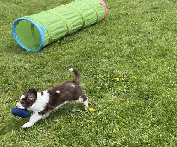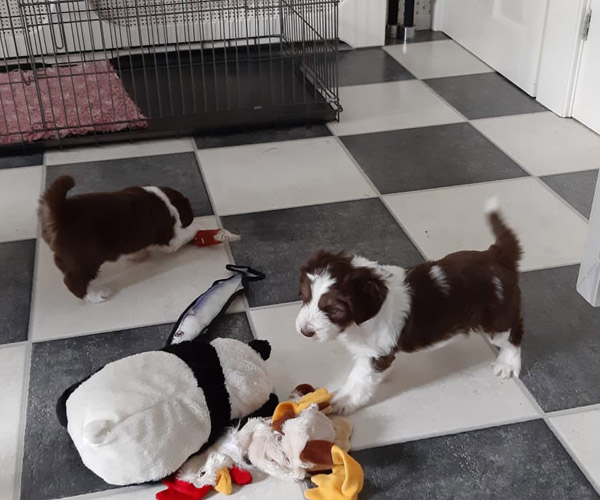 Ook hebben ze inmiddels puppytoiletjes waar ze nu al regelmatig hun behoefte op doen!