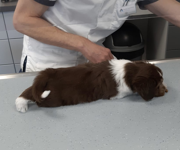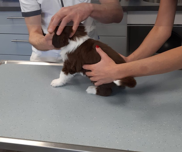 Maandag 26 april krijgen de puppen hun eerste enting en ze worden nagekeken door de dierenarts. De dierenarts is tevreden; geen navelbrrukjes, hun gebitjes zijn goed, hun hartjes kloppen mooi en ze hebben allemaal 2 balletjes. Yeaaaaaaaah dat is altijd weer fijn om te horen!