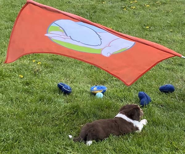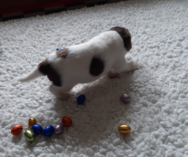 Zondag 4 april: Het leven gaat door. Dido lijkt gelukkig niet van slag af te zijn en Tommie, Bert en Pino eten goed en zijn levendig. We zijn dankbaar dat deze puppen het zo goed doen! De puppen lopen en rennen door de werpkist en het is Pasen vandaag.