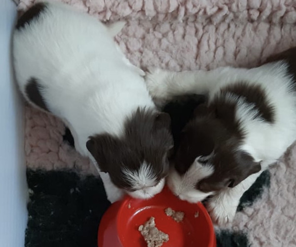 Woensdag 7 april: vandaag wisten de puppen al veel beter wat ze moesten doen met hun halve theelepeltje vers vlees..... Het is mooi om te zien hoe snel ze zich ontwikkelen