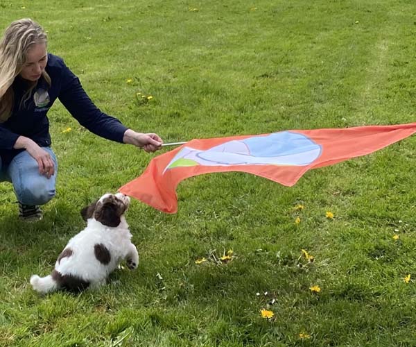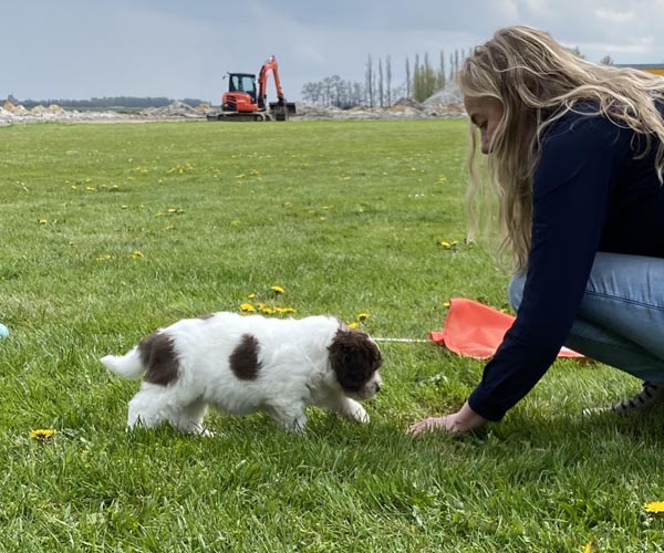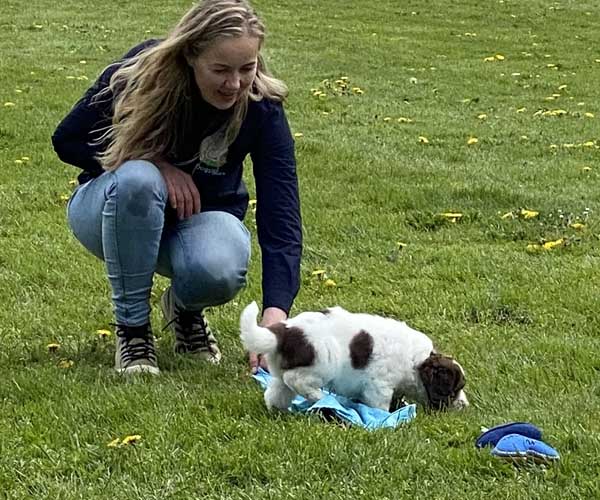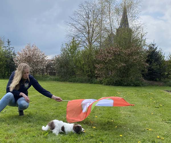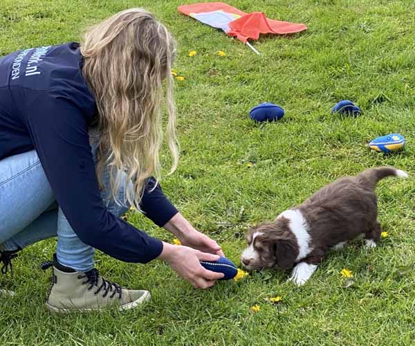 Zaterdag 1 mei: Het is tijd voor de puppentest. Wat is dit genieten want deze 3 puppen zijn met vlag en wimpel door deze test gekomen. Heerlijke vrije mensgerichte puppen die eigenlijk niet hoeven te herstellen omdat ze niet schrikken van deze vreemde prikkels. Heel gek op knuffen met de mensen en stoer dat zijn ze alle 3!