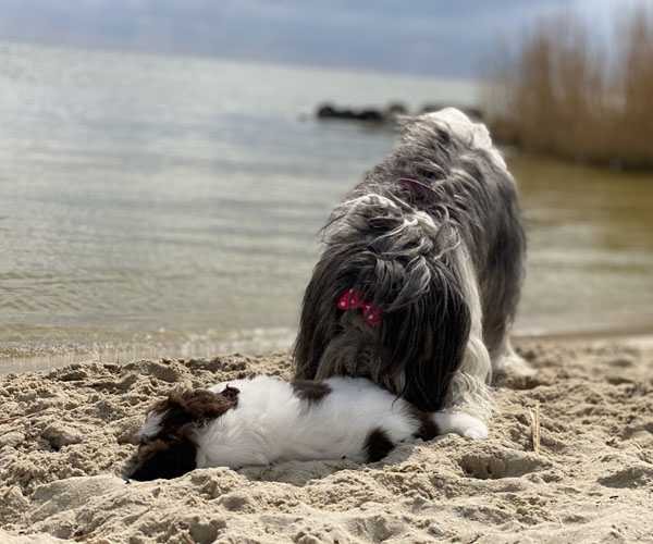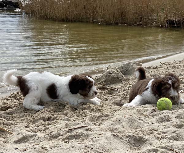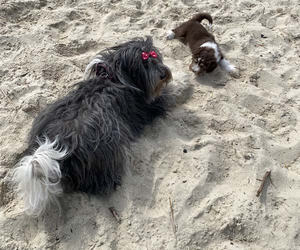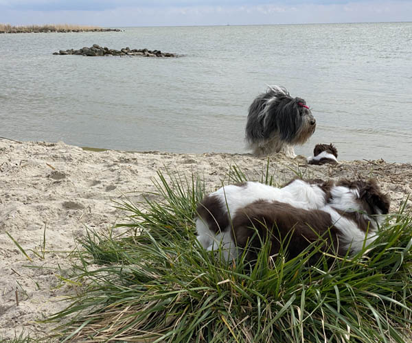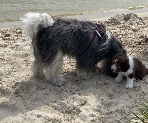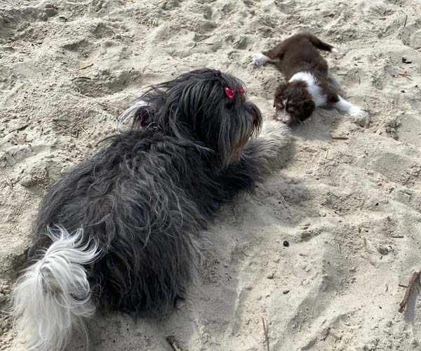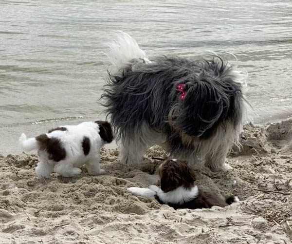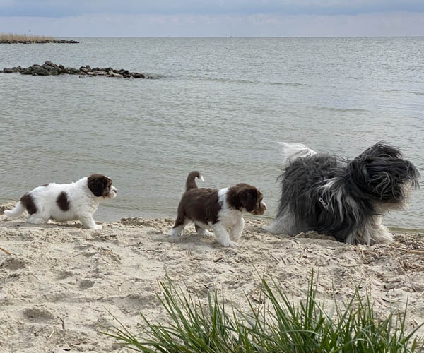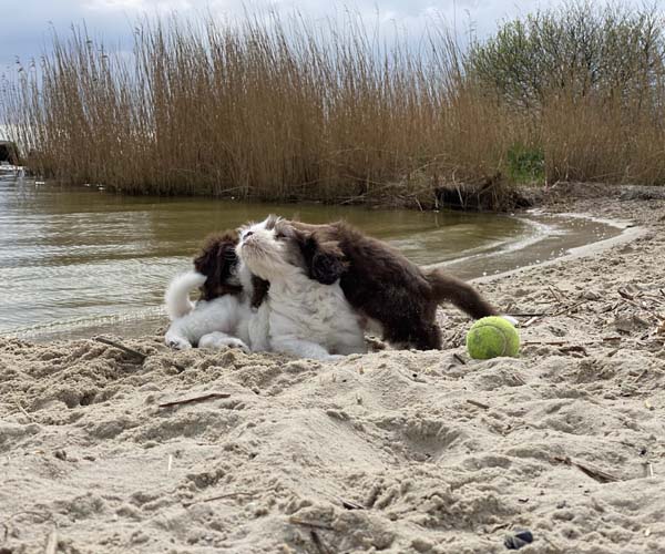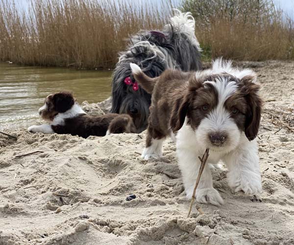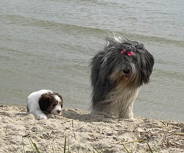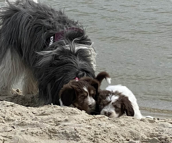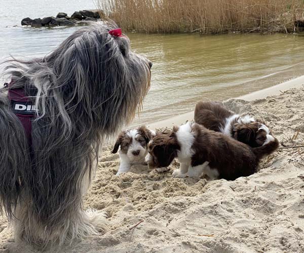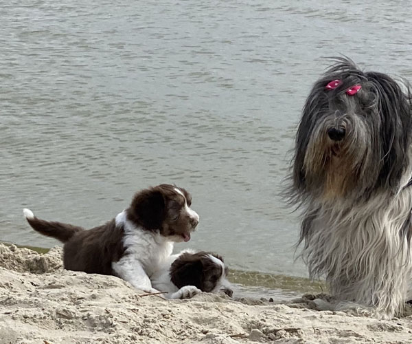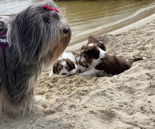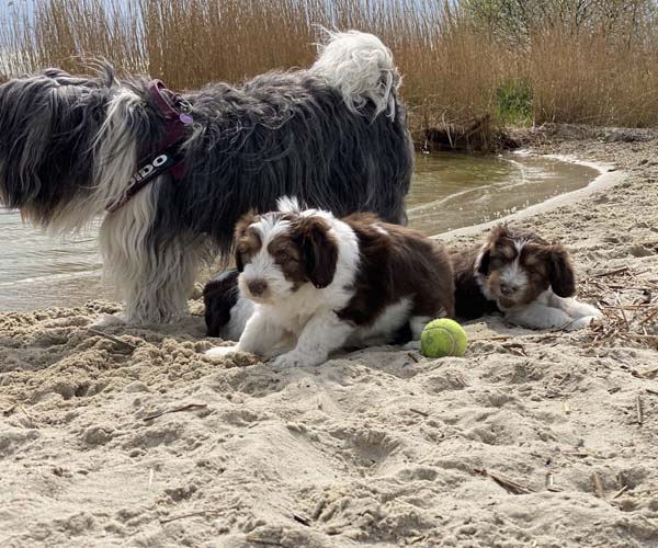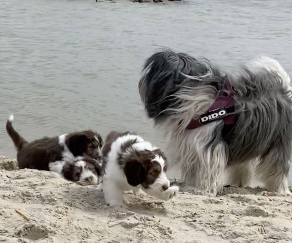 Vandaag is het feest want de puppen gaan lekker genieten op het strandje met mama Dido. Wat hebben ze het naar hun zin en ook Dido vind het helemaal geweldig om zo lekker buiten met haar puppen te kunnen spelen.