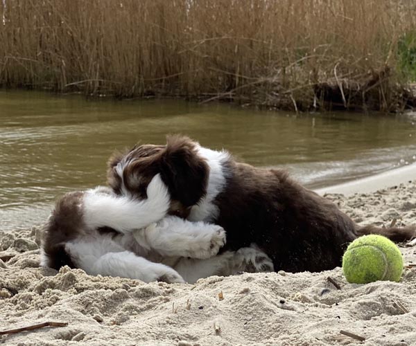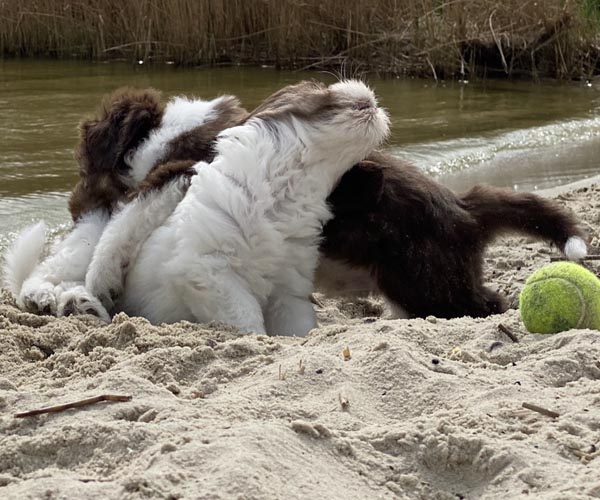 Na afloop van de test nog even lekker met elkaar spelen, nieuwe ondergronden ontdekken en buitelen