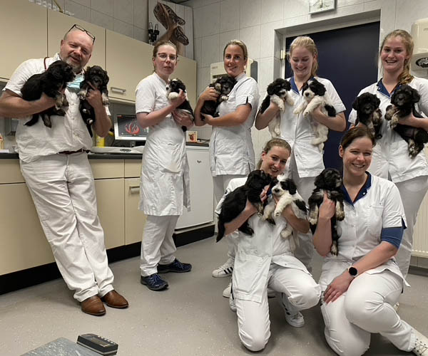 Maandag 16 mei: Vandaag worden alle puppen uitgebreid onderzocht door het team van dierenkliniek de Waterpoort in Sneek die ons nauw bijstaan gedurende de dracht en tijdens onze nesten zie ook https://www.anicura.nl/de-waterpoort/