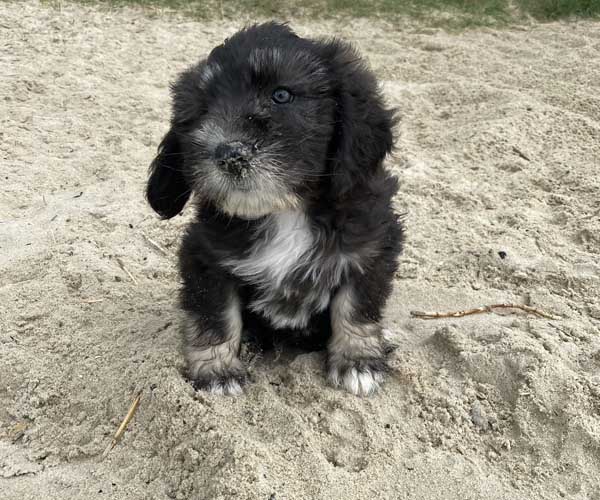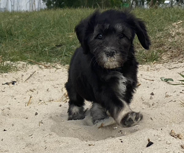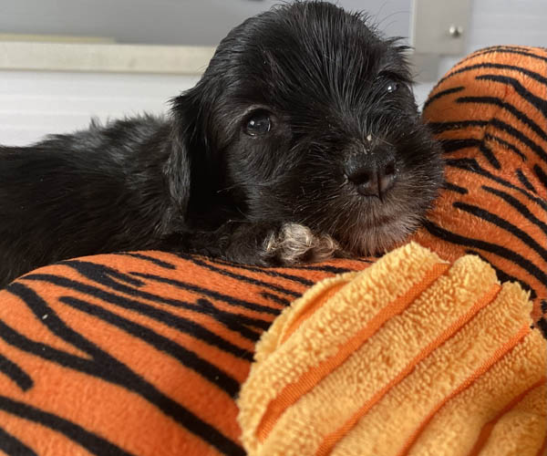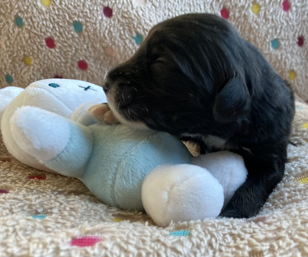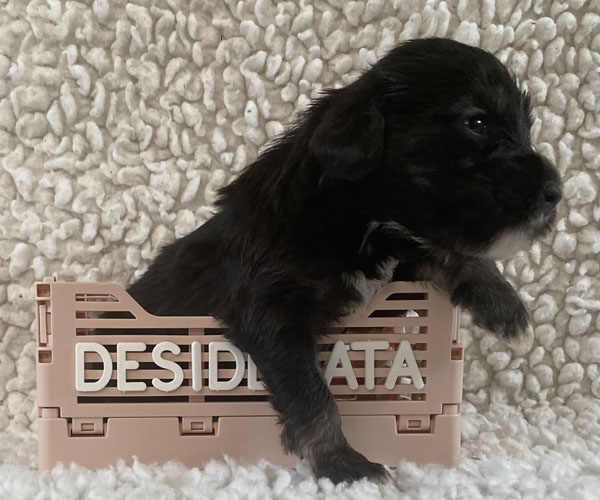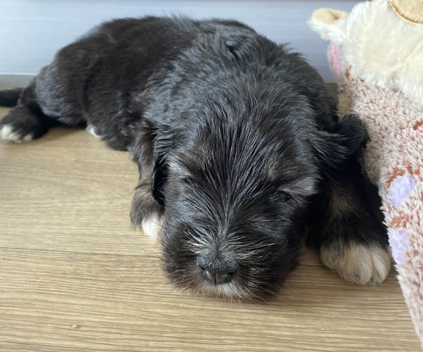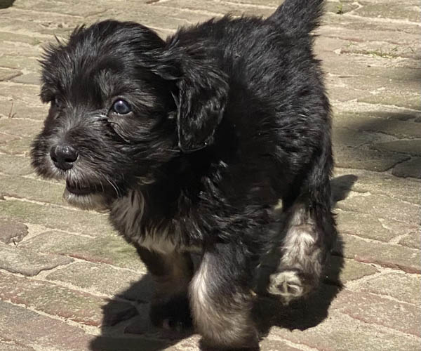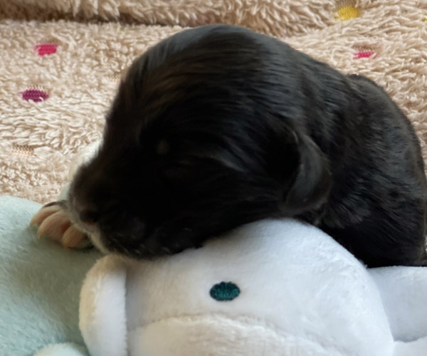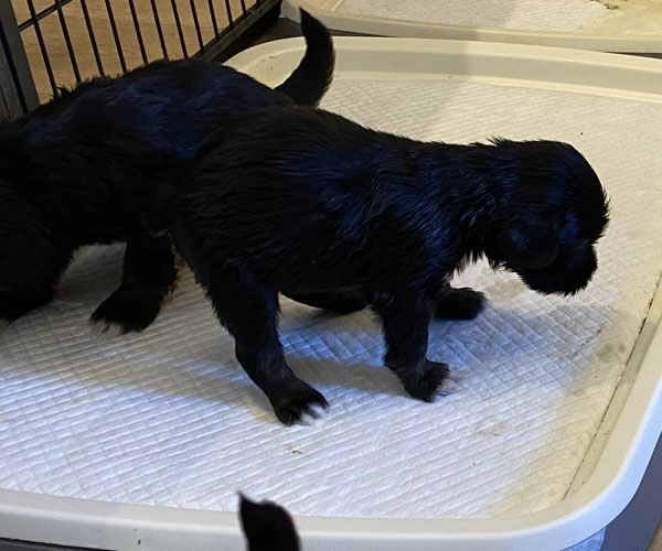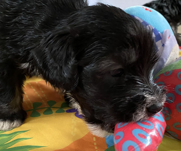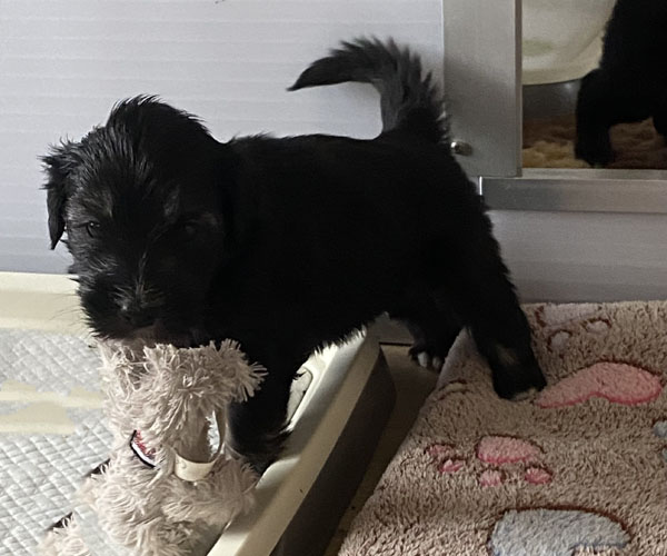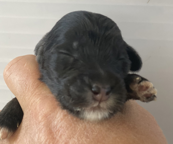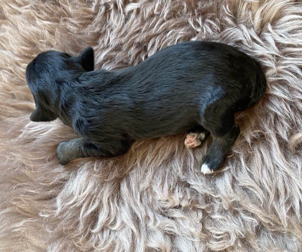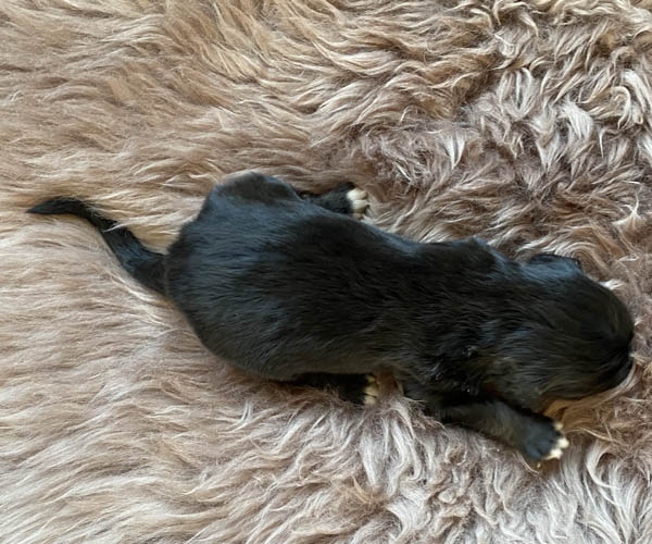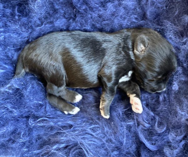 Pup 7 DESIDERATA Teefje zwart met een lange staart. Geboortegewicht 306 gram.