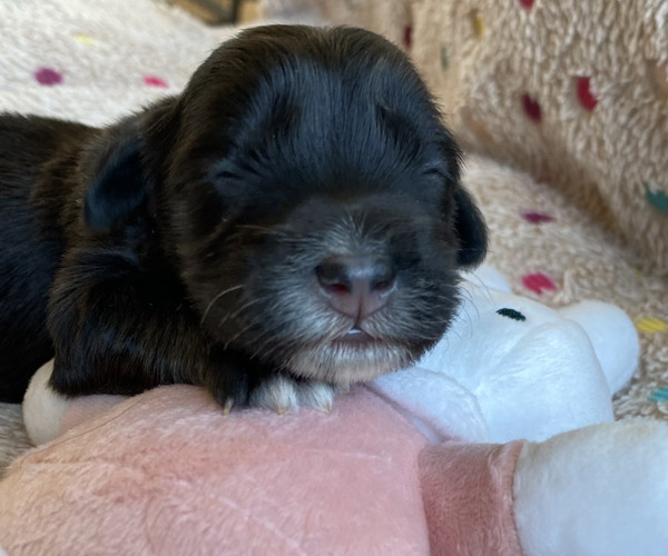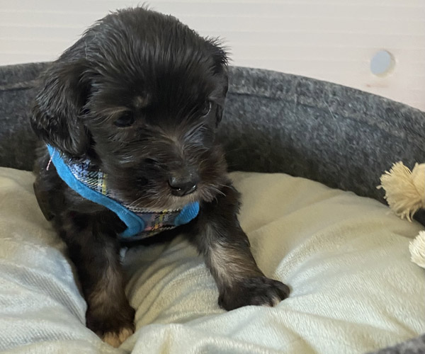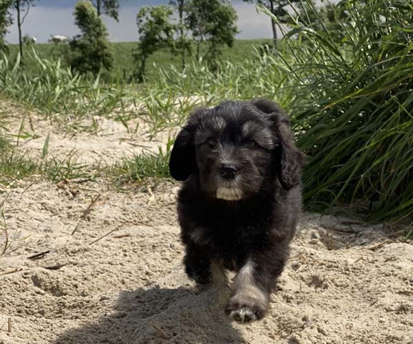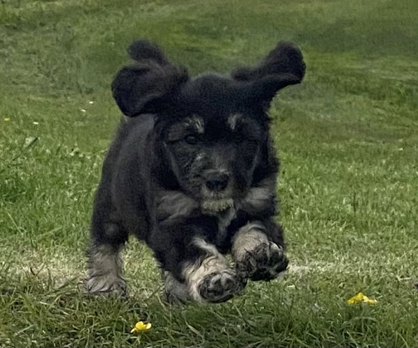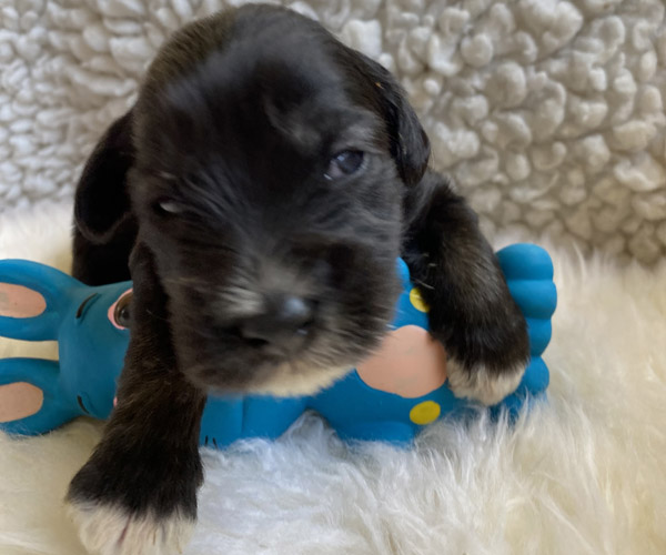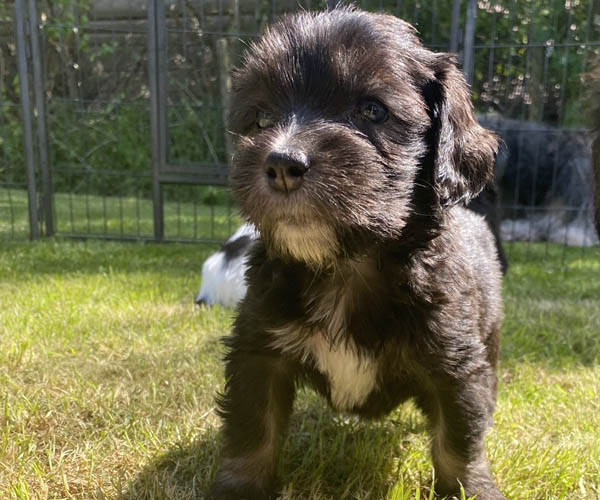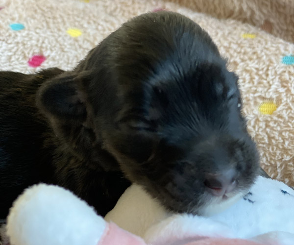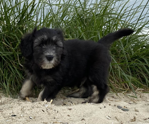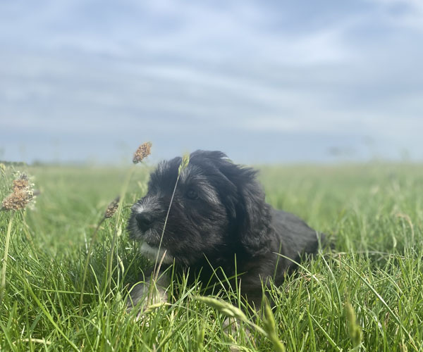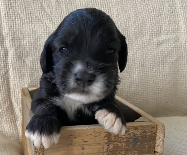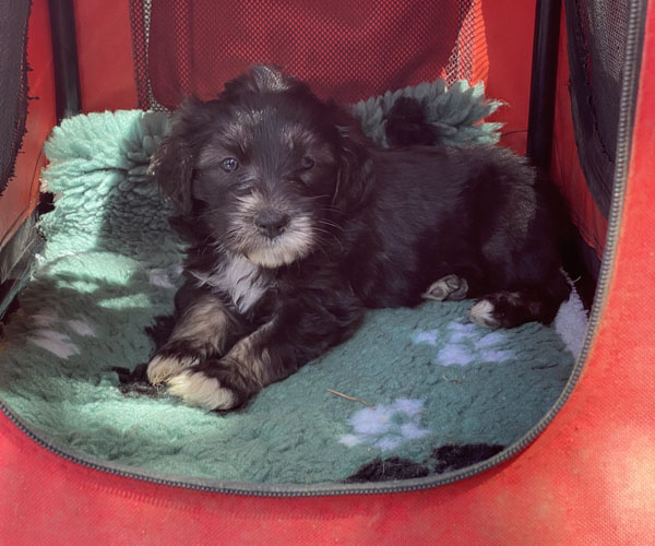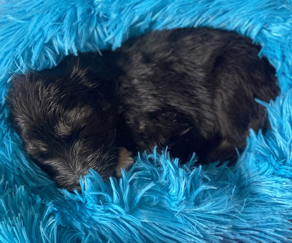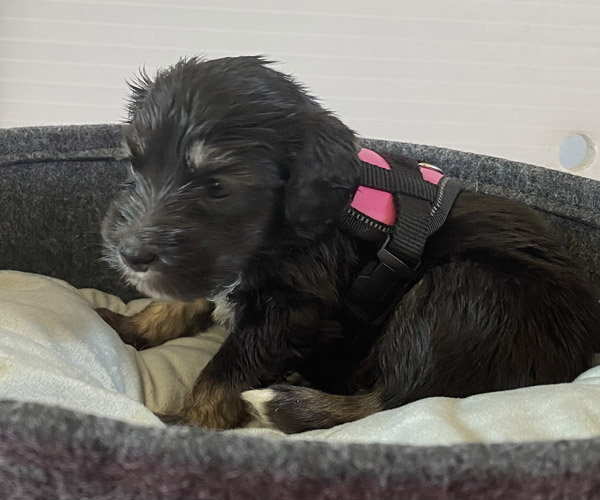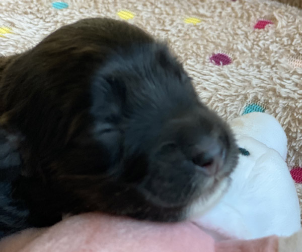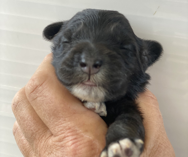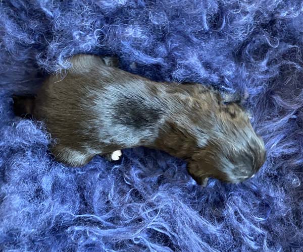 Pup 7 DESIDERATA Teefje zwart met een lange staart. Geboortegewicht 306 gram.