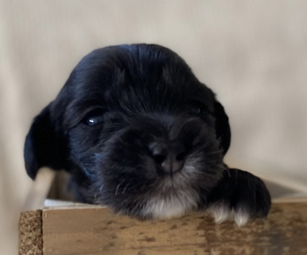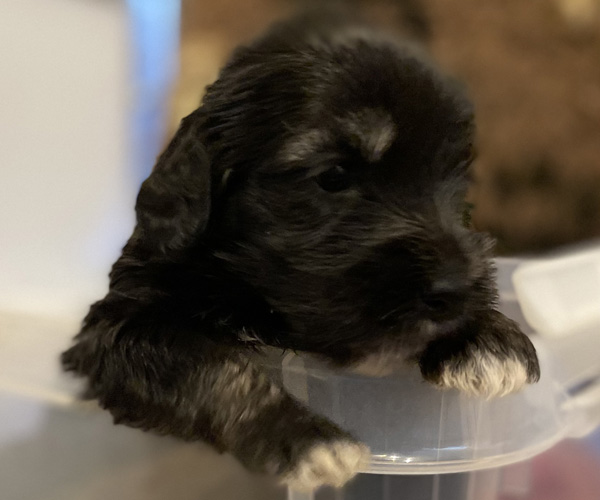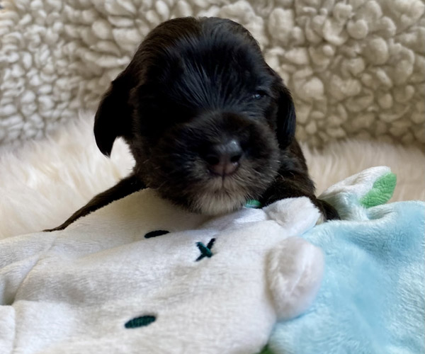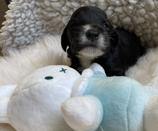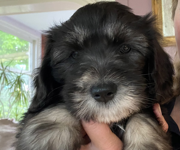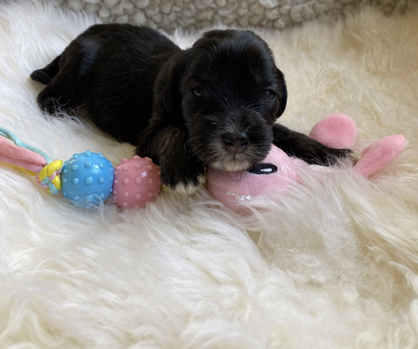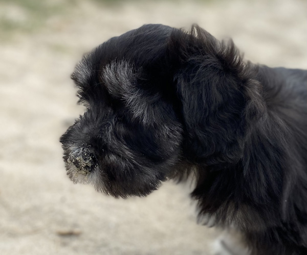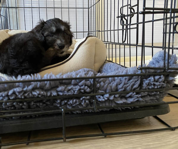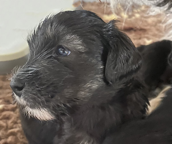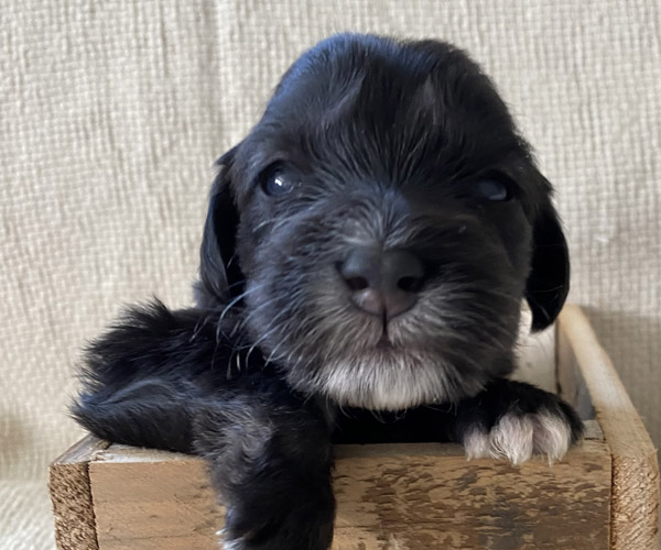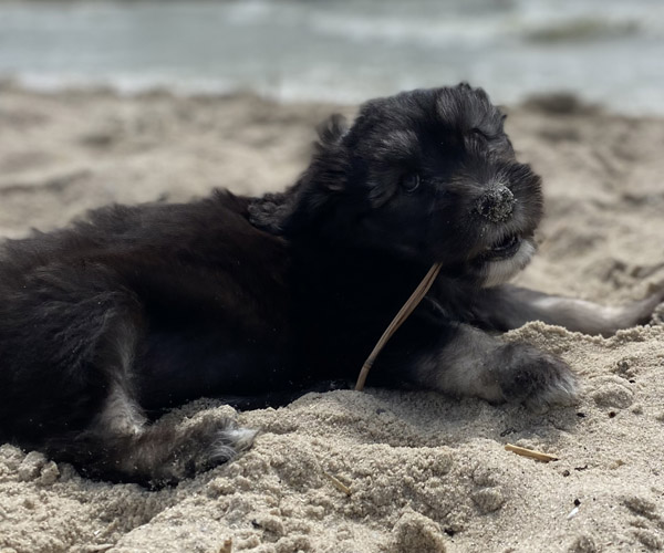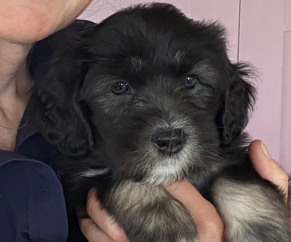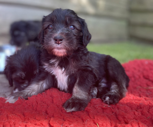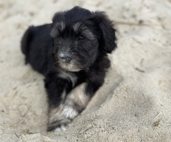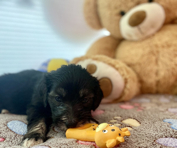 Pup 7 DESIDERATA Teefje zwart met een lange staart. Geboortegewicht 306 gram.