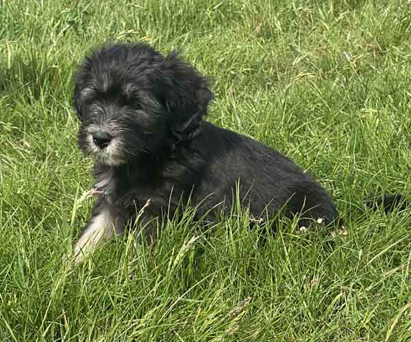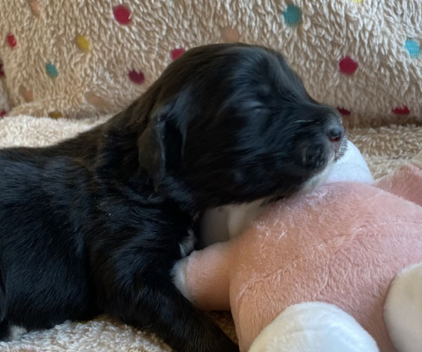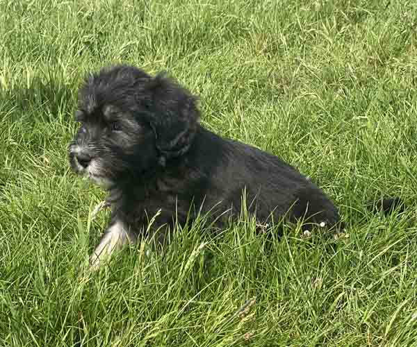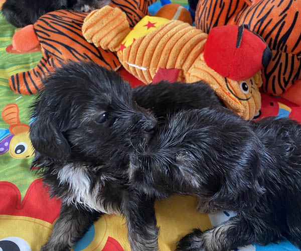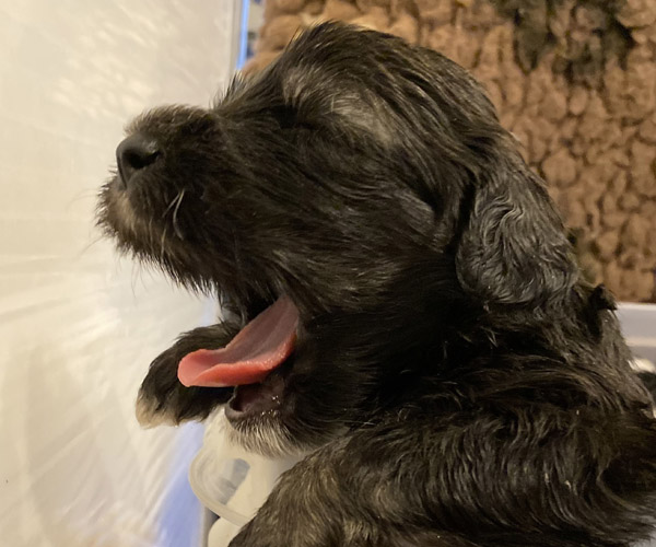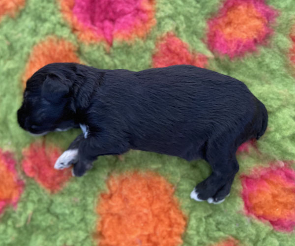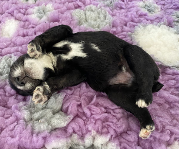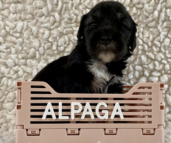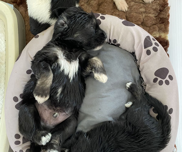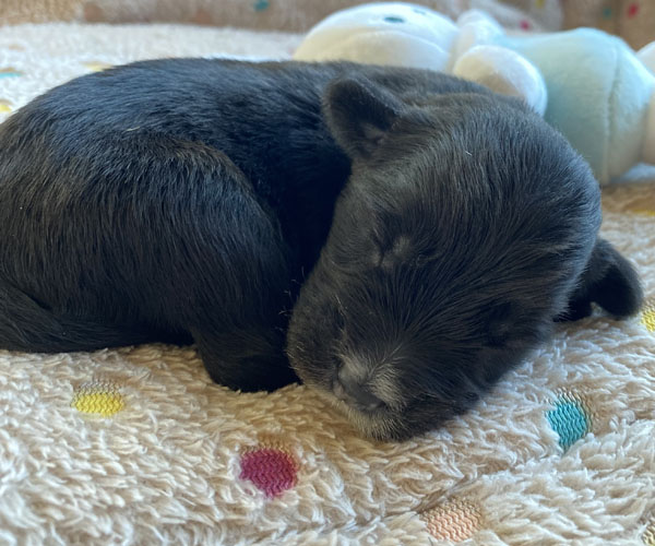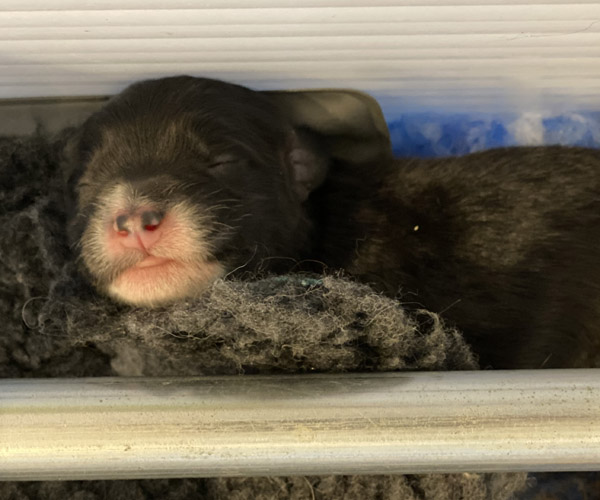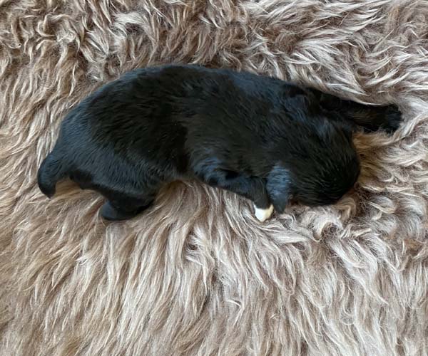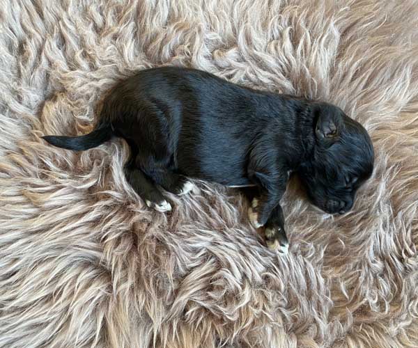 Pup 3 ALPAGA Teefje zwart met een korte staart. Geboortegewicht 335 gram.