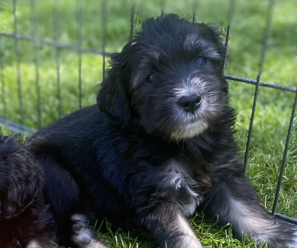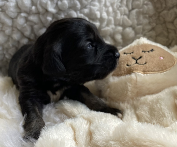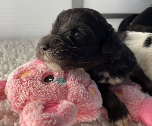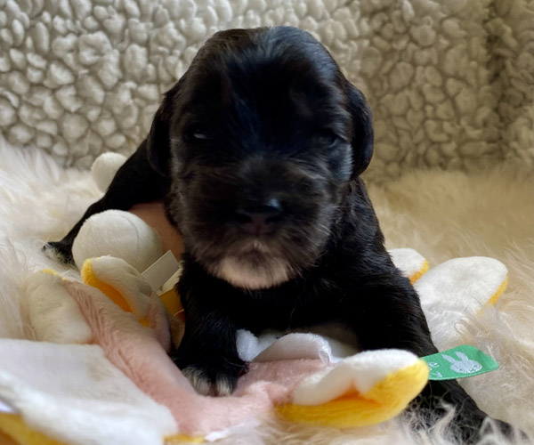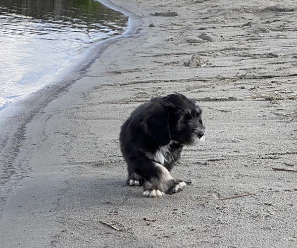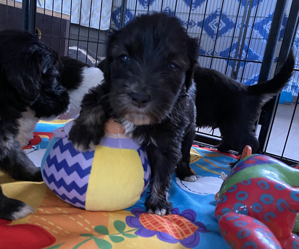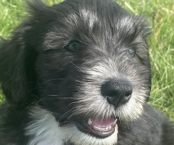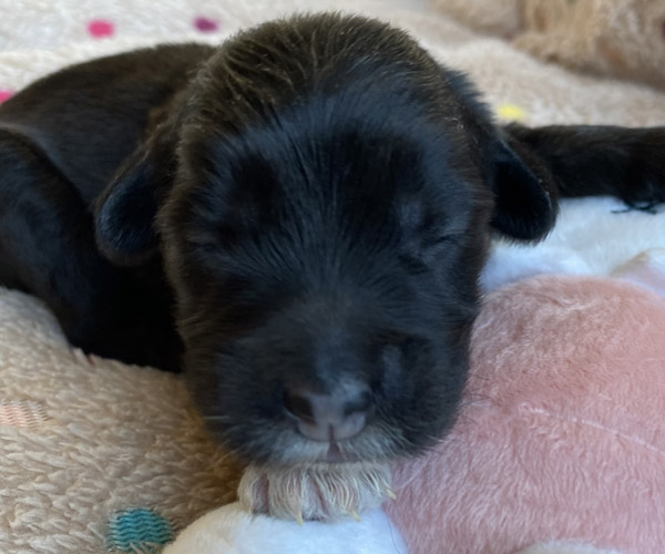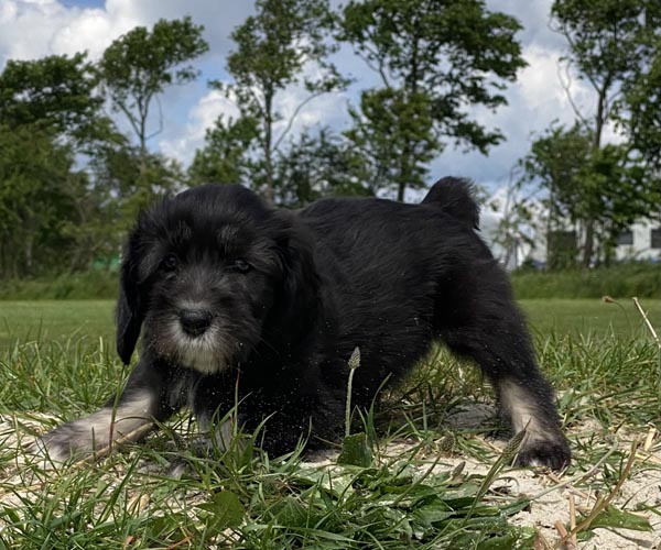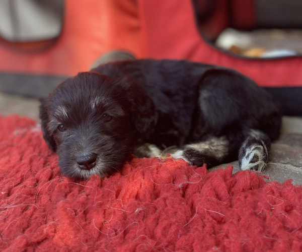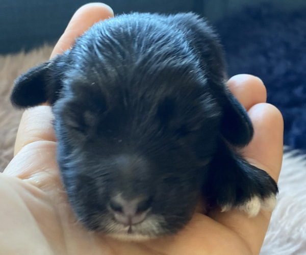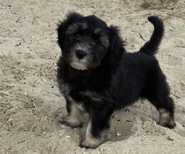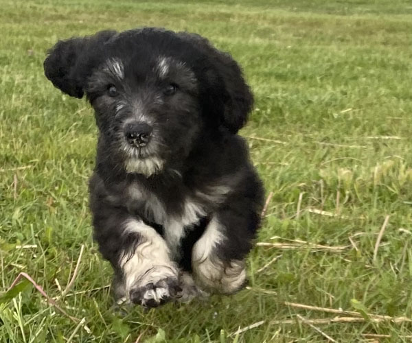 Pup 3 ALPAGA Teefje zwart met een korte staart. Geboortegewicht 335 gram.