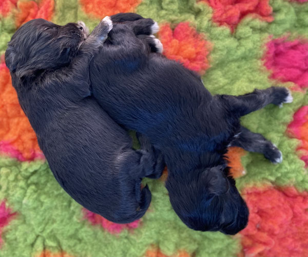 Heel erg fijn: alle puppen hebben de gezondheidscheck heel erg goed doorstaan; alle hartjes klopten als een stoomtrein, de gebitjes waren goed, geen navelbreukjes en de mannen hadden alle 4 hun balletjes ingedaaald.