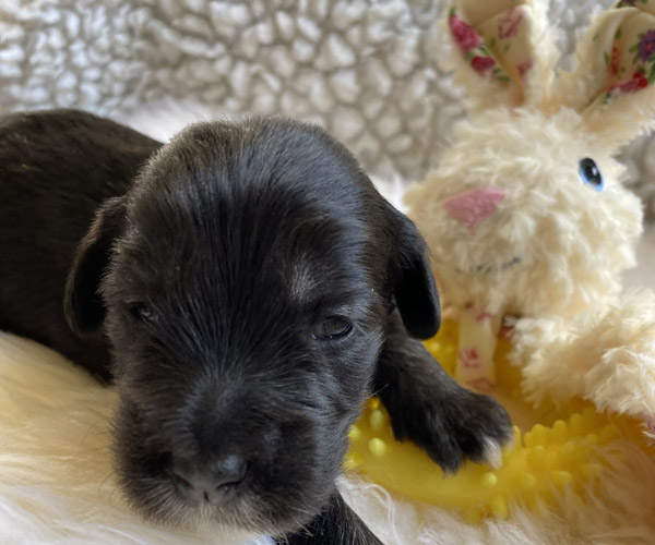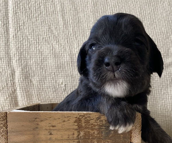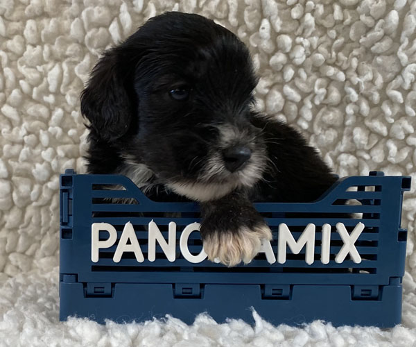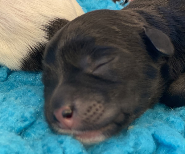 Pup 5 PANORAMIX Reutje zwart met een korte staart. Geboortegewicht 328 gram.