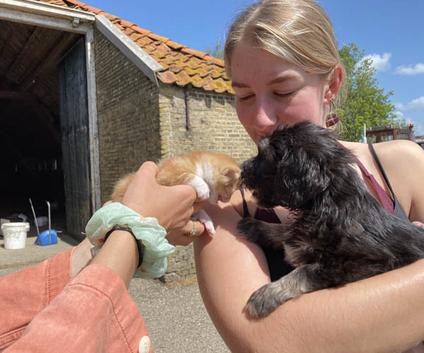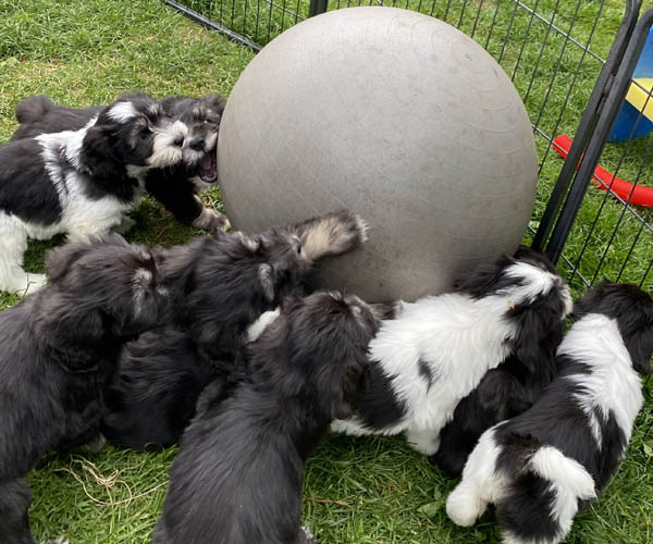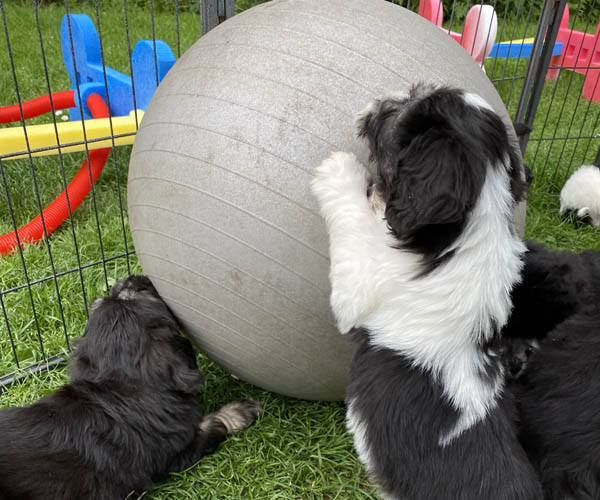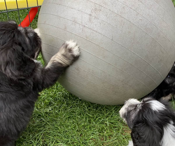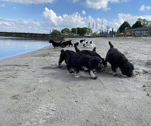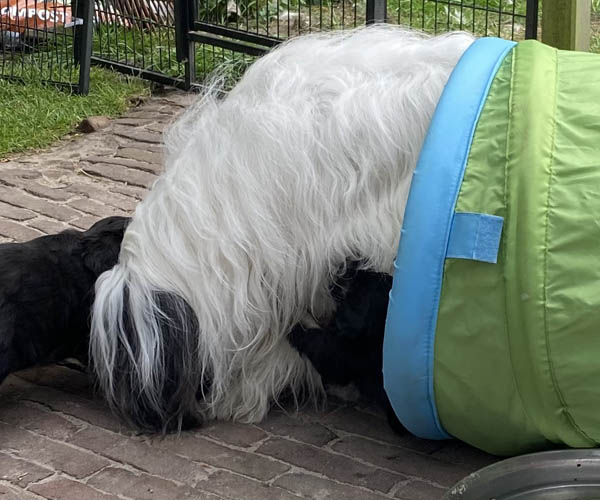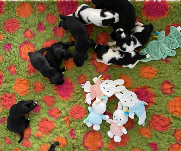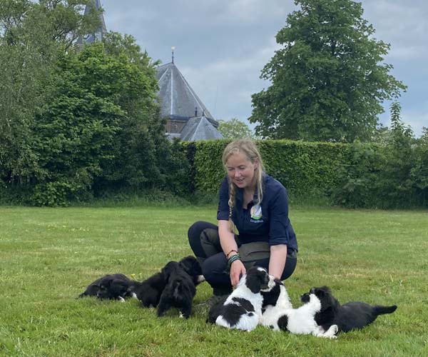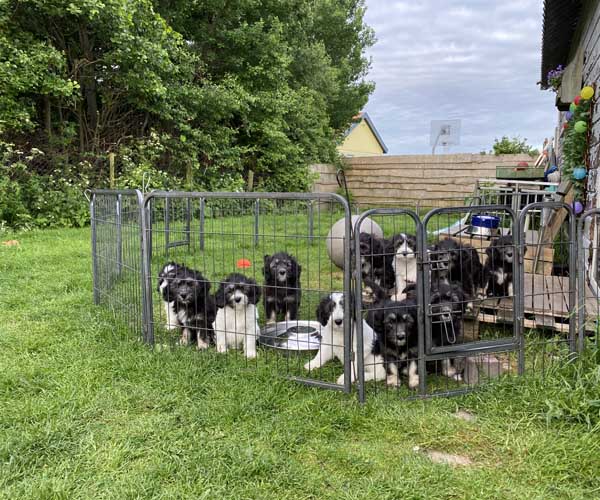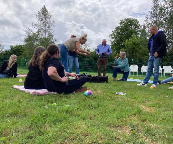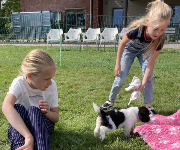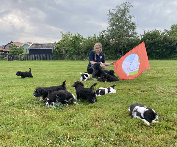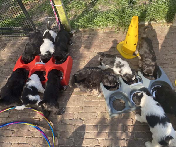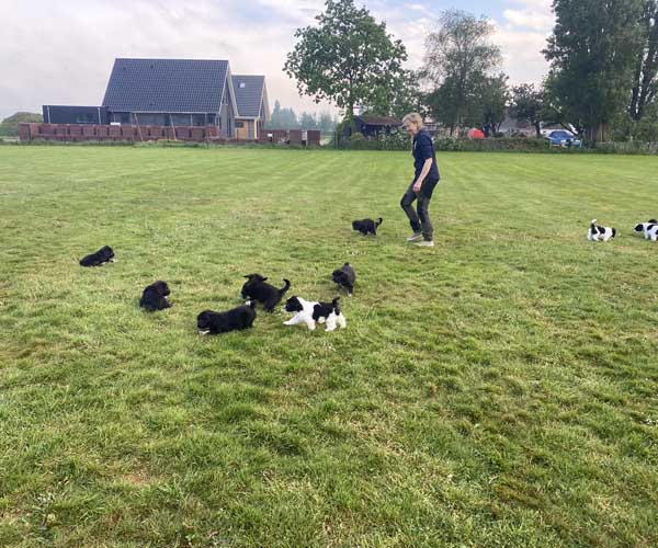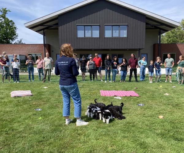 We krijgen vaak complimenten dat we onze puppen zoveel aanbieden en laten kennis maken met de buitenwereld voor ze het nest verlaten. Wij vinden dat echter onze taak als goede fokker. We hebben maar zo’n korte periode waarin ze alles wat ze meemaken met elkaar als vanzelfsprekend ervaren en daarmee creeren wij een stabiele basis voor de rest van hun leven. Dat is vooral voor herdershondjes extra belangrijk. Dus ja, wij zijn er enorm druk mee en het kost een berg energie maar onze puppenkopers plus de puppen zelf hebben er enorm veel profijt van! We doen het met liefde……