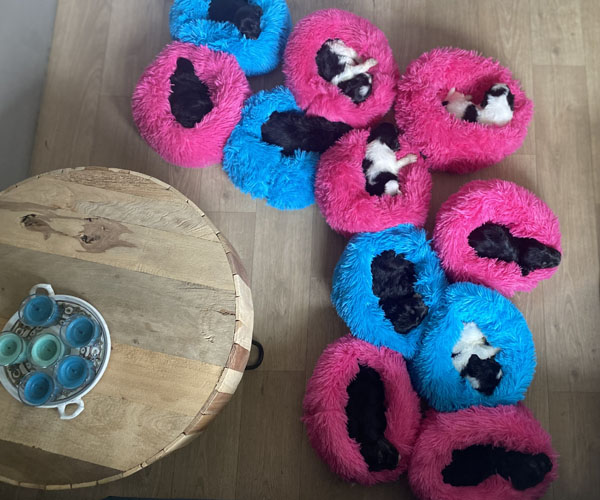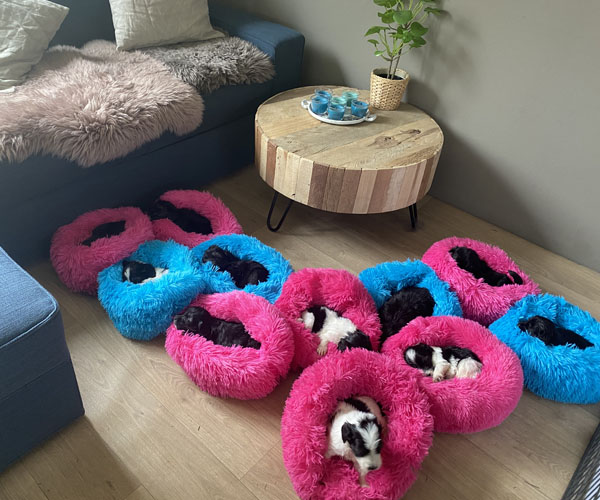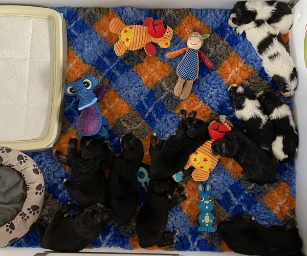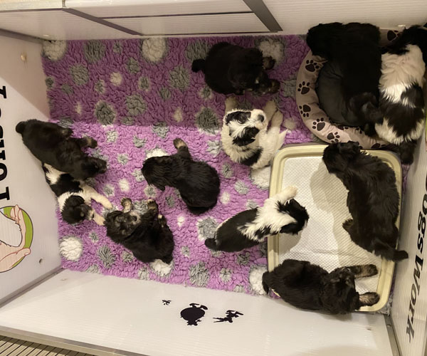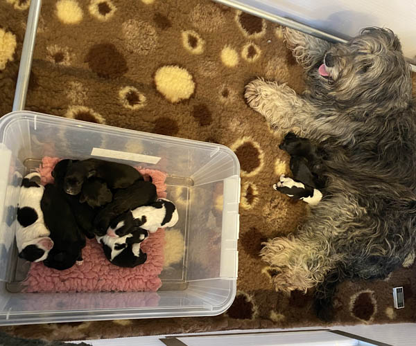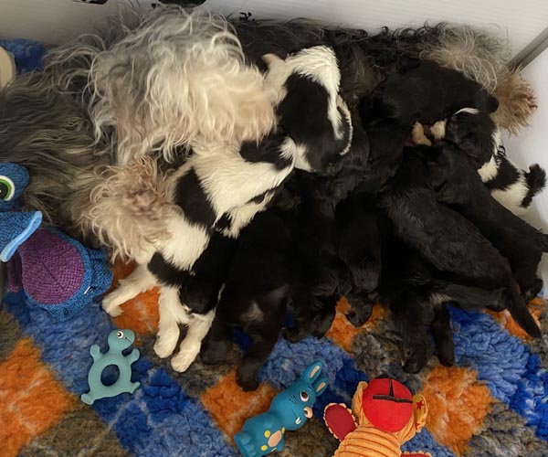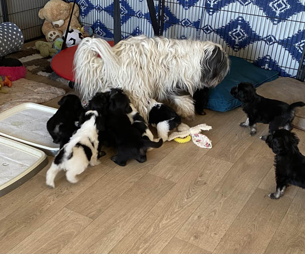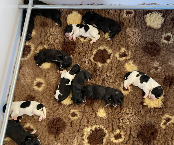 Puk (Dancer Pon van Joya) en Niebo (Niebo du Clos de L'Igloo) hebben op 3 april 2022 maar liefst 11 puppen gekregen!