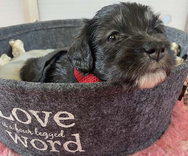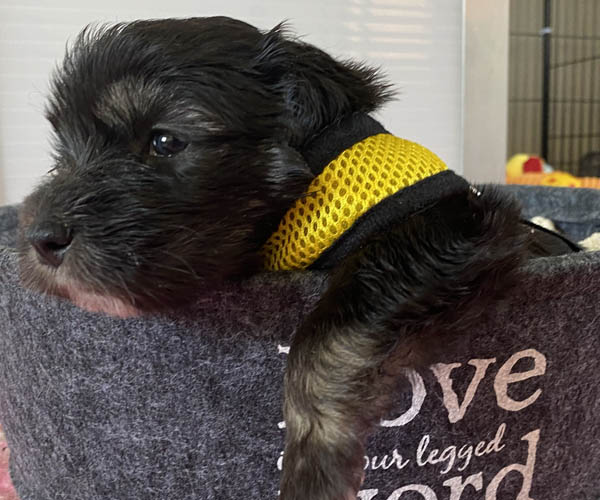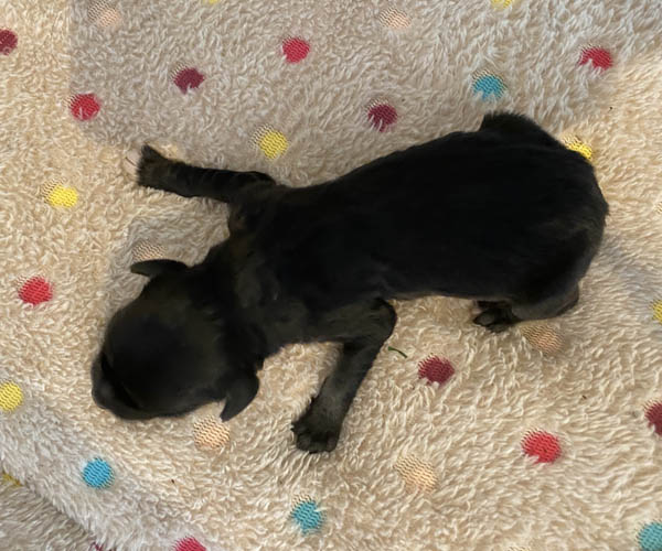 Pup 11 ASTERIX Reutje zwart met een hele korte staart. Geboortegewicht 254 gram.