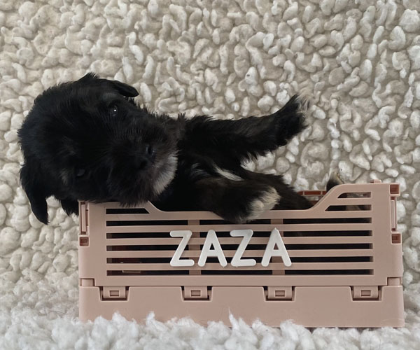 Pup 10 ZAZA Teefje zwart met een lange staart. Geboortegewicht 324 gram.