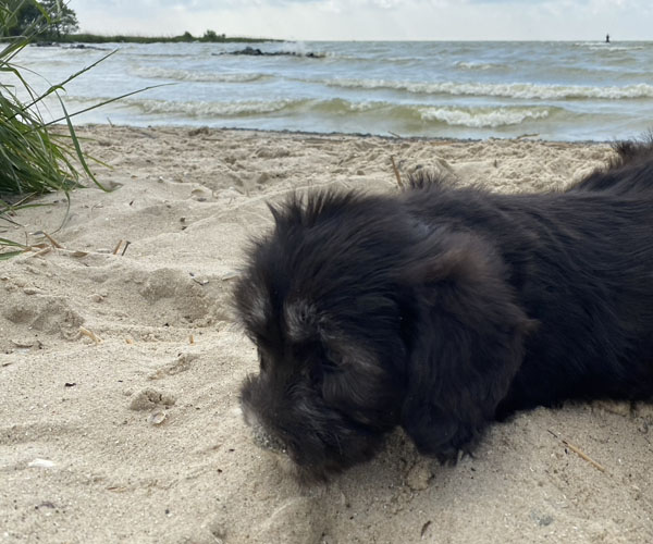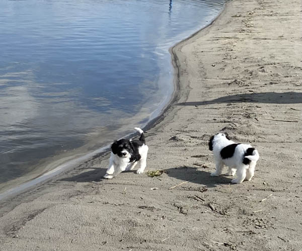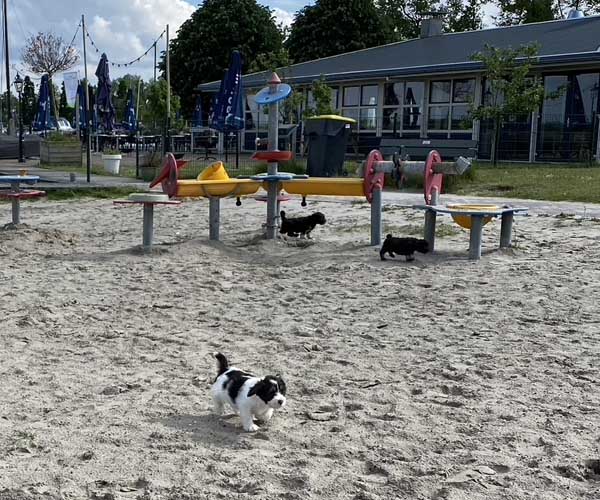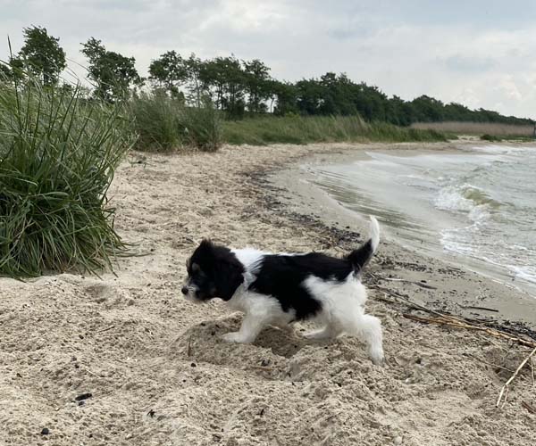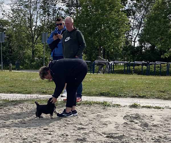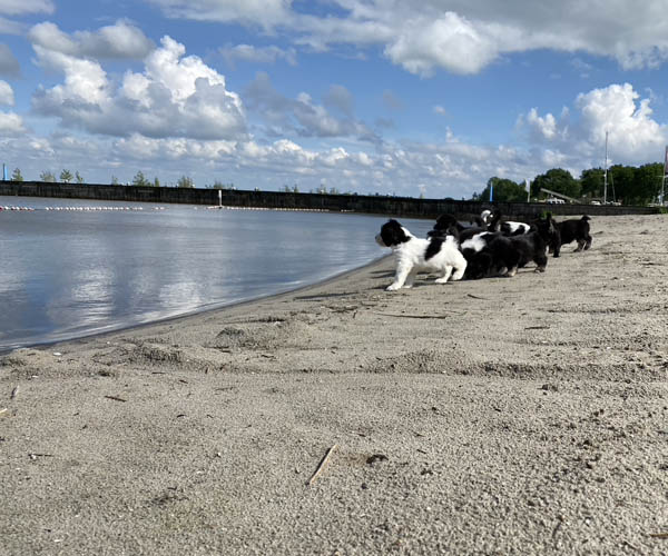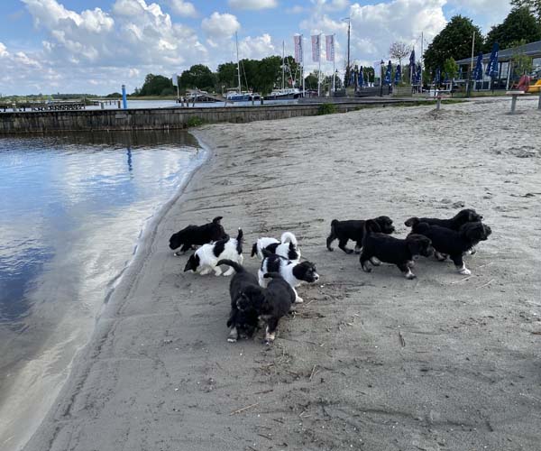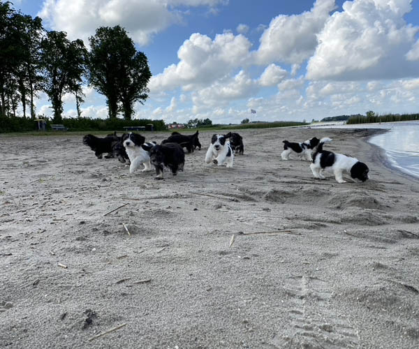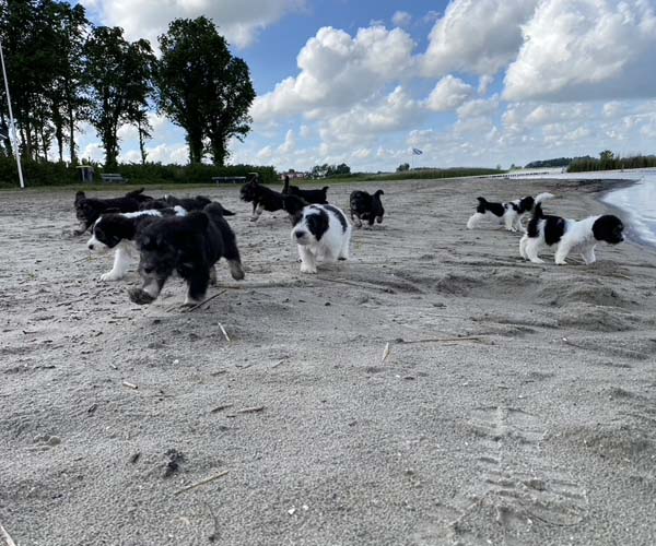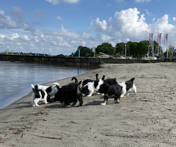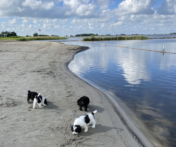 Om de puppen vast te laten wennen dat ze verder gaan zonder broertjes en zusjes hebben we de pups een voor een meegenomen naar het strandje. Ze waren zelfverzekerd en hebben genoten van de aandacht die we ze konden geven! We waren er wel een hele ochtend zoet mee! 11 keer op en neer maar gelukkig is het strandje erg dichtbij.