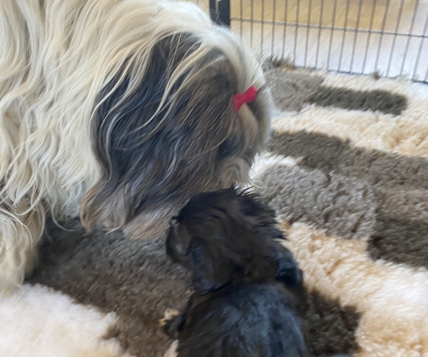 Pup 2 CLEOPATRA Teefje zwart met een lange staart. Geboortegewicht 375 gram