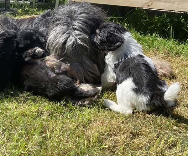 We zijn blij dat we zoveel gezinnen gelukkig kunnen maken met een pup van Puk en Niebo. Puk is een geweldige zorgzame mama voor haar puppen geweest en ook onze roedel heeft zijn steentje bijgedragen in de opvoeding van dit nest.