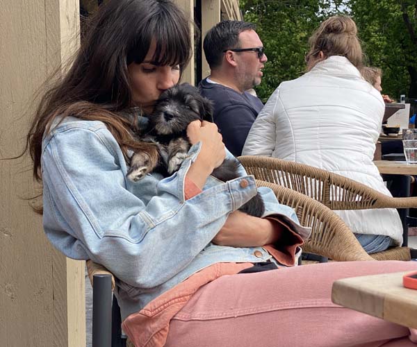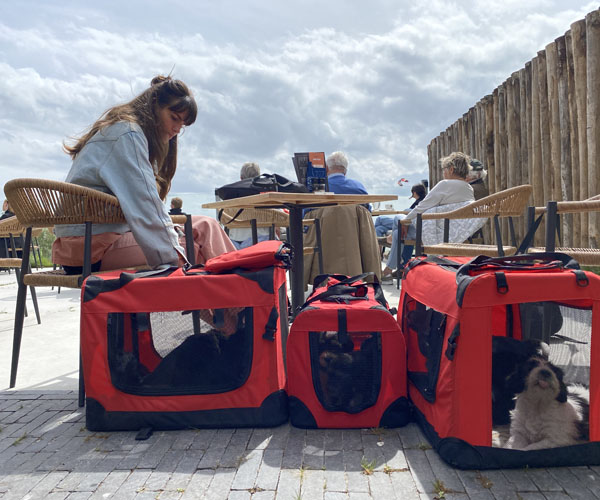 Heerlijk genieten met de puppen op het terras. Ze vonden het prima ze zijn inmiddels zo goed gewend aan de canvas benches!