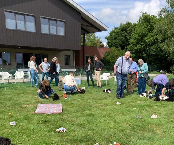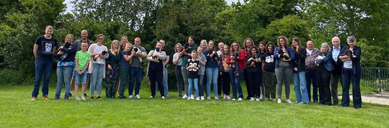 Zaterdag 21 mei is het PUPPYPARTY! Eindelijk mag het weer (wegens Coronamaatregelen) en wat is het leuk om al deze enthiousiaste mensen te ontmoeten! Eerst hebben we uitgebreid verteld over het ras de Nizinny en hebben deze mensen kennis kunnen maken met Kaitlyn (stammoeder van onze kennel), Nanu (beste hulpmama ever), Joya (geweldige dochter van Kaitlyn en fantastische mama van 4 nestjes) en Frodo (hulphond van Patrick en zoon van Kaitlyn) en onze puber Lis (kleindochter van Kaitlyn). Daarna was het tijd om met de puppen te spelen en te knuffelen en wat zijn we trots op deze enorm vrije puppeduppies die het geweldig vonden en ook hebben genoten vandeze geweldige puppyparty! Alle mensen harteiljk bedankt dat jullie zo'n eind zijn komen rijden en wij verheugen ons op vandaag want dan mogen we weer zo'n leuke puppyparty houden!