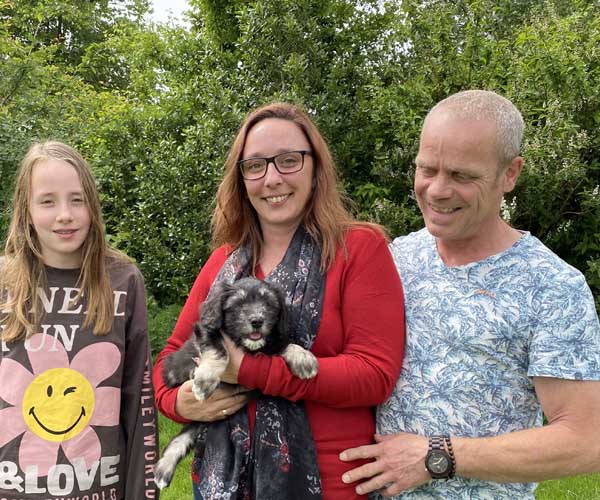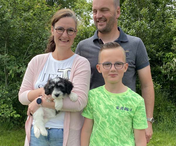 Alpaga wordt nu Nina genoemd. Wat een mooi moment was dat toen dit gezin mocht vernemen dat een van de puppen naar hen toe mocht verhuizen. Nina wensen we een mooie toekomst en dat zal vast gaan lukken bij Joleen en Annamelia zo lekker dicht bij het strand! Alle geluk met elkaar!