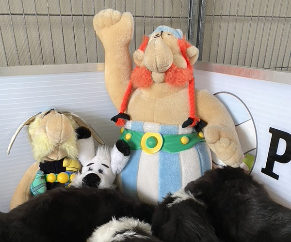 We zijn voor deze puppen naar de fokker Clos De L'Igloo gereden waar de papa van dit nest woont te weten Niebo. Dat is vlakbij het pretpark van Asterix en Obelix. Toen we ook nog de kleine sterke stoere en dappere laatste pup kregen was het helemaal duidelijk dat deze pup Asterix moest gaan heten.