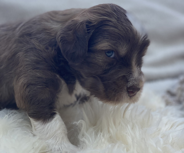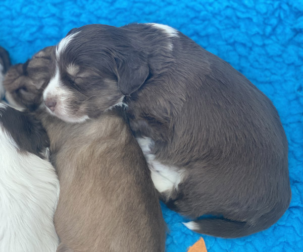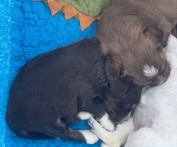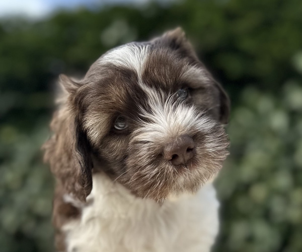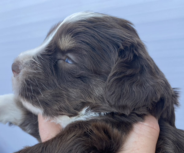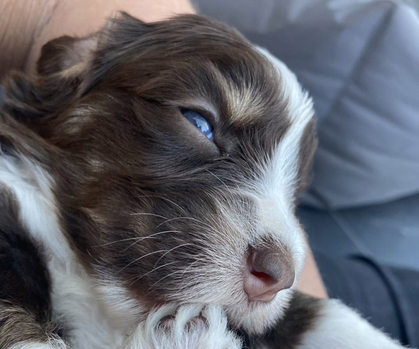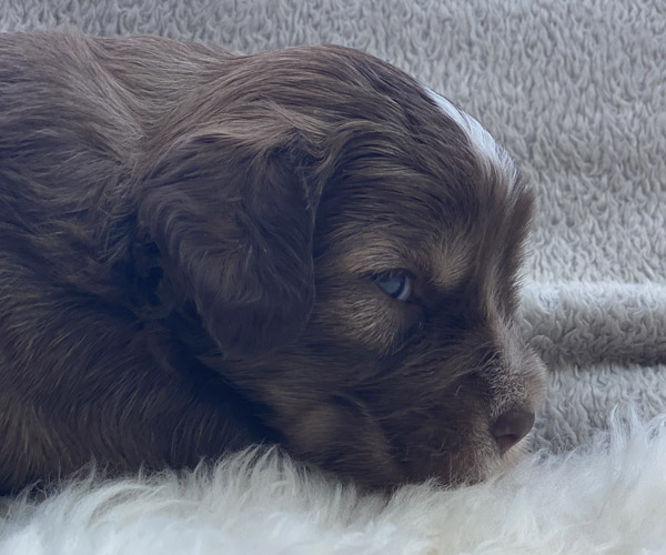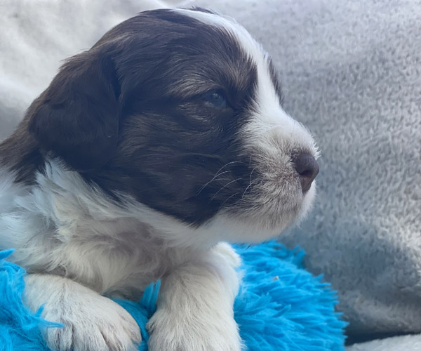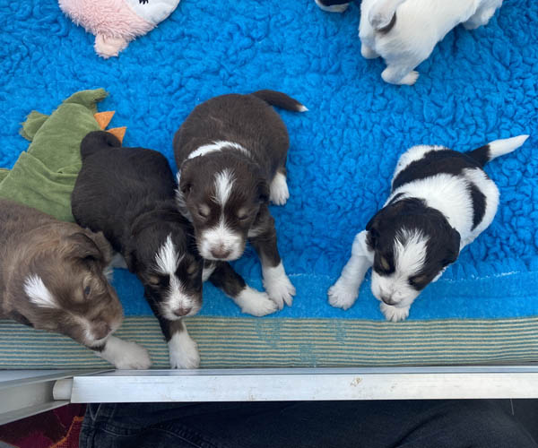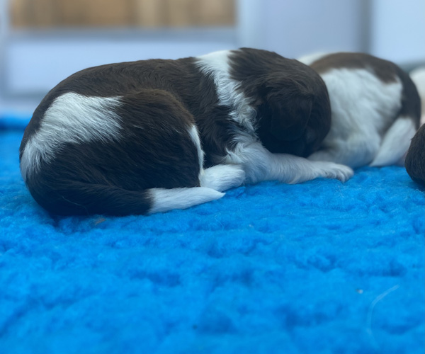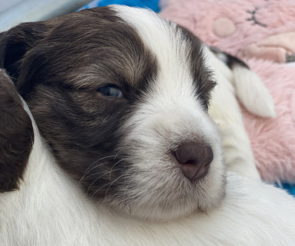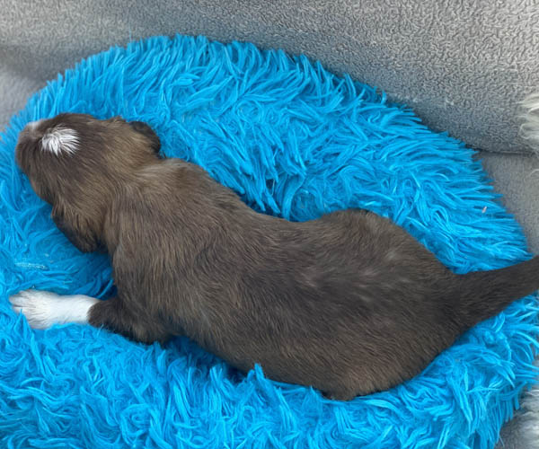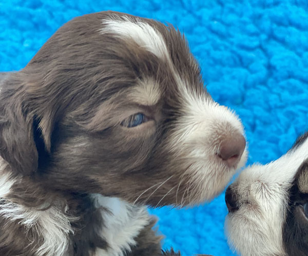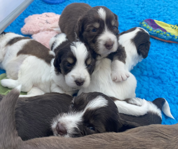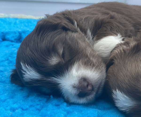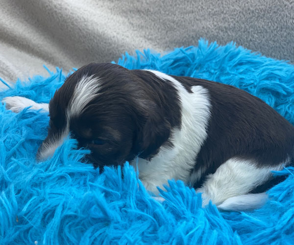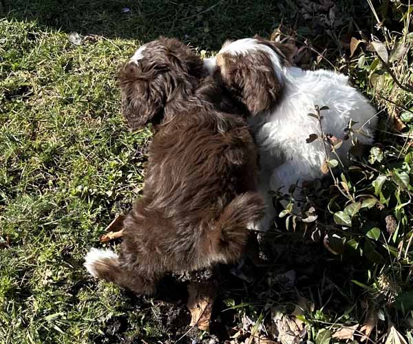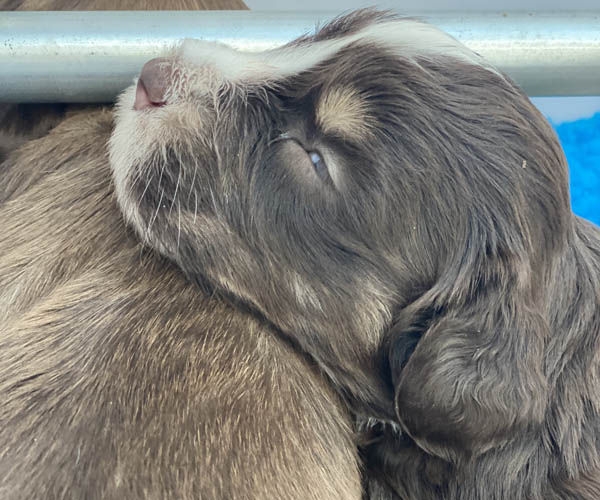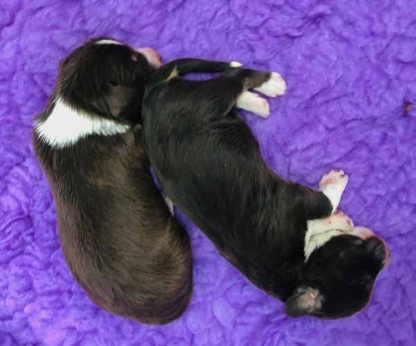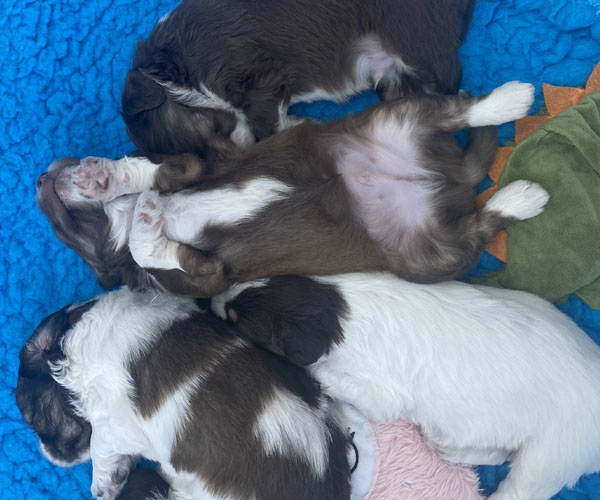 7 prachtige bruin/witte puppen met lange staart.5 reutjes en 2 teefjes en zo bijzonder mooi! De puppen zijn erg levendig en drinken erg goed en mama Coco maakt het ook goed