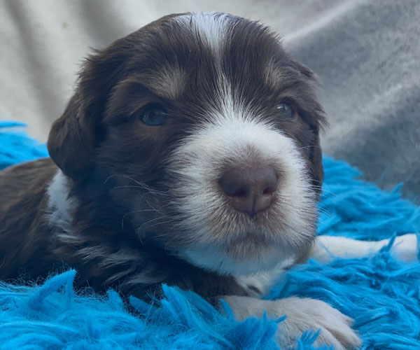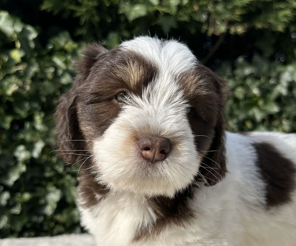 Pup 7 reutje bruin/wit