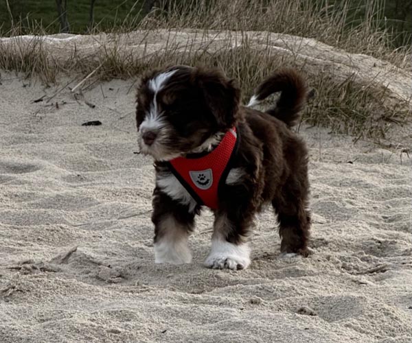 Pup 6 reutje bruin/wit