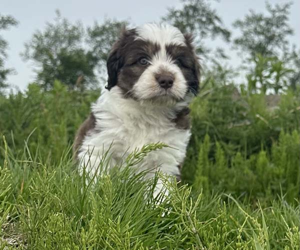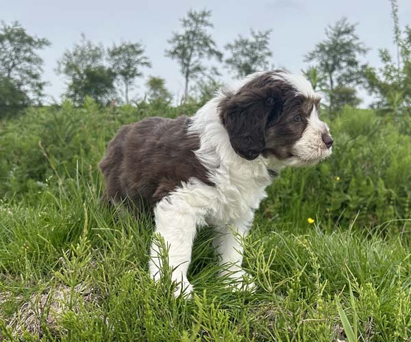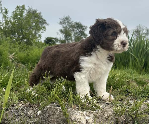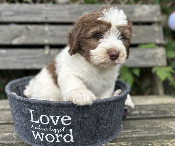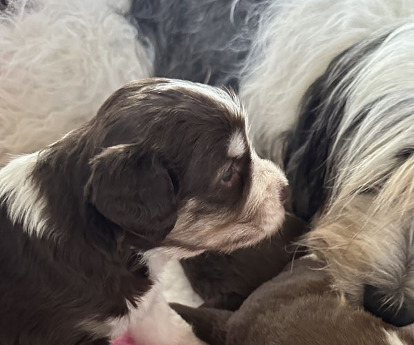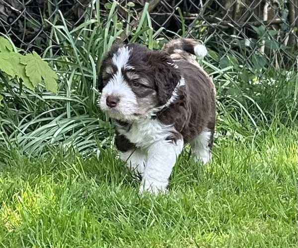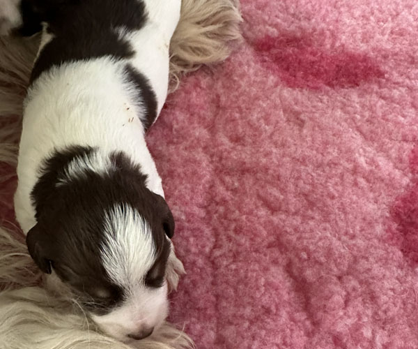 Pup 3 Reutje donkerbruin/wit, geboortegewicht 331 gram, naam PUPU