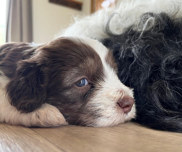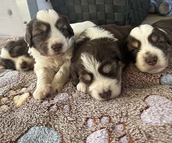 Wat geniet ik van ieder moment met deze puppen. Het is zo bijzonder omdat ik met Kaitlyn mijn allereerste nestje had en daarna met haar dochter Iezy een nestje en daarna nu dus met haar kleindochter Lis. Kaitlyn is dus de overgrootmoeder van deze puppen en haar bijzonder fijne karakter, haar werklust en haar zachtheid komen in deze puppen zeker naar voren. Daarbij heeft Lis de relaxedheid van haar moeder Iezy geerfd en ook dat is duidelijk merkbaar in dit nest. Wat bijzonder dat overgrootmoeder Kaitlyn dit mee mag maken. Ik voel me zo trots als een pauw!