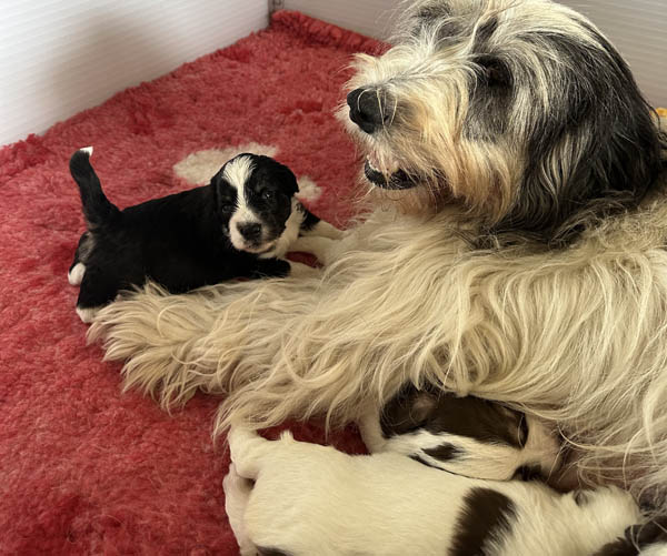 Vrijdag 29 maart: en zowel mama Lis als de puppen maken het goed. Mama Lis is echt heel erg relaxed, liefdevol en verzorgend en dat merk je meteen aan de puppen. Ze groeien heel erg goed en zijn sinds hun geboorte allemaal gemiddeld al 100 gram gegroeid.