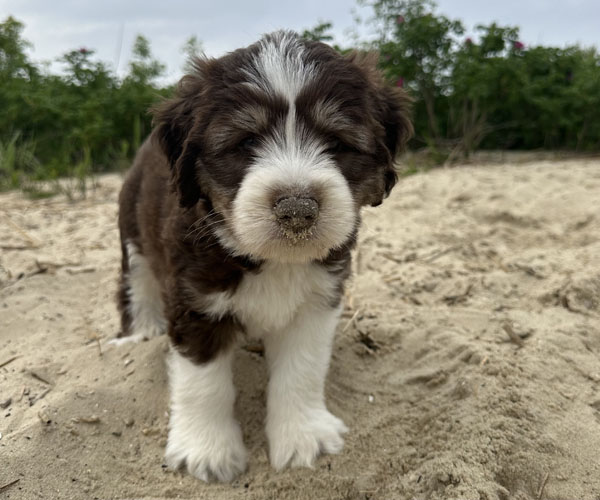 Pup 6 Reutje donkerbruin/wit, geboortegewicht 317 gram, naam ZEC