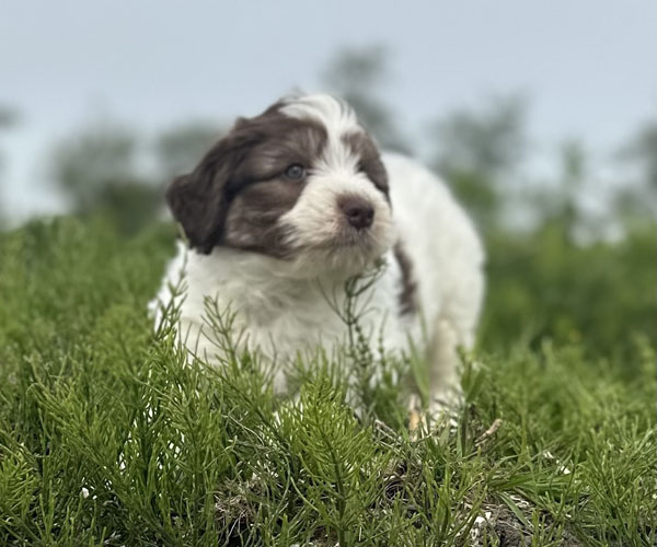 Pup 2 Reutje wit/donkerbruin, geboortegewicht 350 gram, naam COELHO