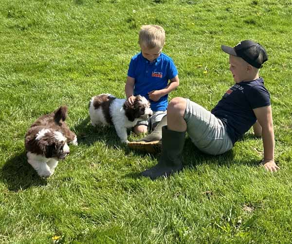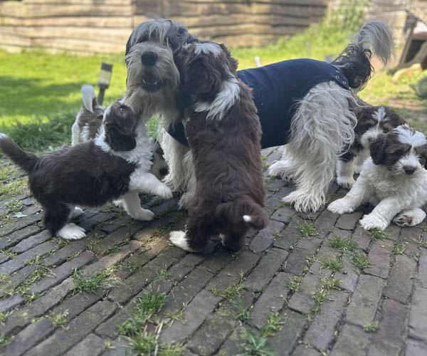 Om zoveel mogelijk tijd aan onze puppen te kunnen besteden als we deze hebben organiseren wij pupyparties. Zo kunnen we meerdere families gelijktijdig ontmoeten en ons verhaal vertellen over onze kennel en onze werkwijze en iedereen krijgt de gelegenheid om vragen te stellen. Zo ontmoeten we elkaar en dat is wederzijds belangrijk. Wat een gezellige en relaxte puppyparty hebben we ervan gemaakt met elkaar. Het ophalen van de puppen door hun nieuwe gezin ging ook allemaal heel fijn en de puppen gaan een fijne toekomst tegemoet. Mama Lis blijft lekker relaxed. We hebben haar goed voorbereid op het vertrek van haar kroost want we hebben de puppen heel veel meegenomen met de auto en daarbij Lis thuisgelaten. Ze is dus al goed gewend om zonder haar puppen te zijn.