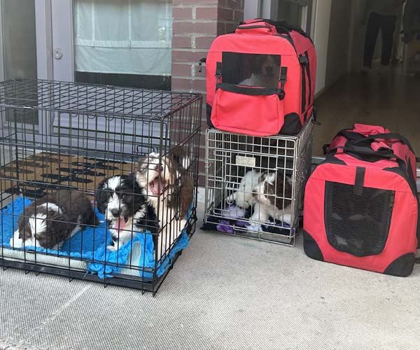 De puppen dragen af en toe tuigjes zodat ze hier al een beetje aan gewend zijn als ze straks naar hun families vertrekken.