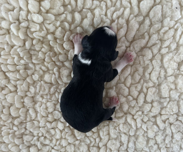 Pup 4 Reutje zwart/wit, geboortegewicht 332 gram, naam LAPIN