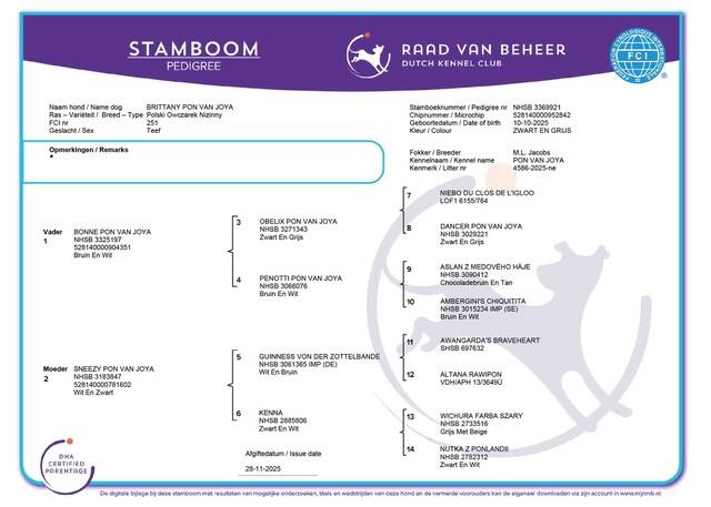 Lis is een pup van onze eigen Iezy (Lizzy Pon van Joya) en Twix (Guinnes von der Zottelbande). Vanwege het geweldige ontspannen en relaxte karakter van mama Iezy en ook van papa Twix hebben wij besloten om maar liefst 2 meiden uit dit laatste nest van Iezy te houden. Wij hopen dat ook deze meiden dit geweldige karakter door gaan geven! En dat heeft ze gedaan in 2024 met haar eerste nestje puppen.