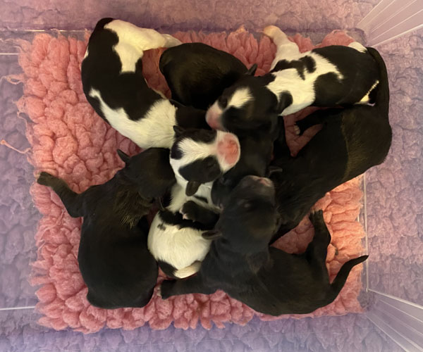 Puk (Dancer Pon van Joya) en Niebo (Niebo du Clos de L'Igloo) hebben op 3 april 2022 maar liefst 11 puppen gekregen!