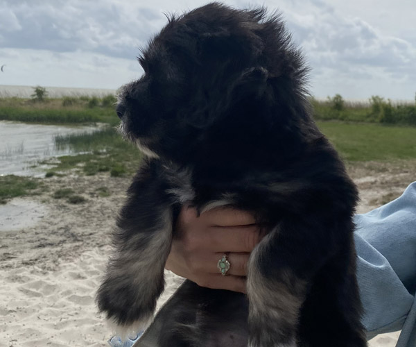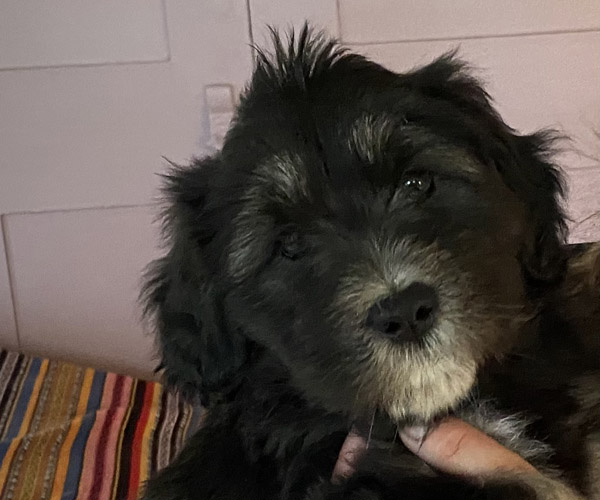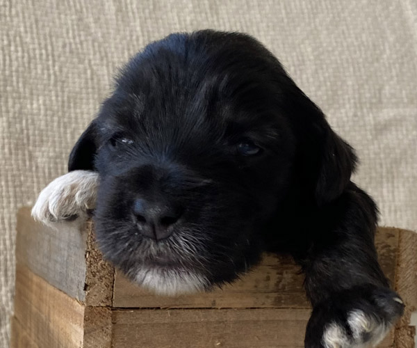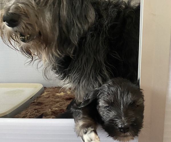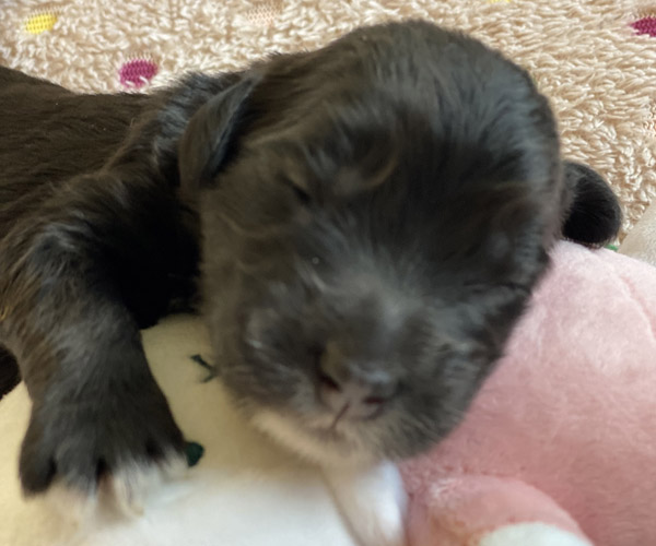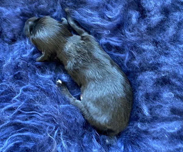 Pup 3 ALPAGA Teefje zwart met een korte staart. Geboortegewicht 335 gram.