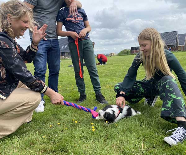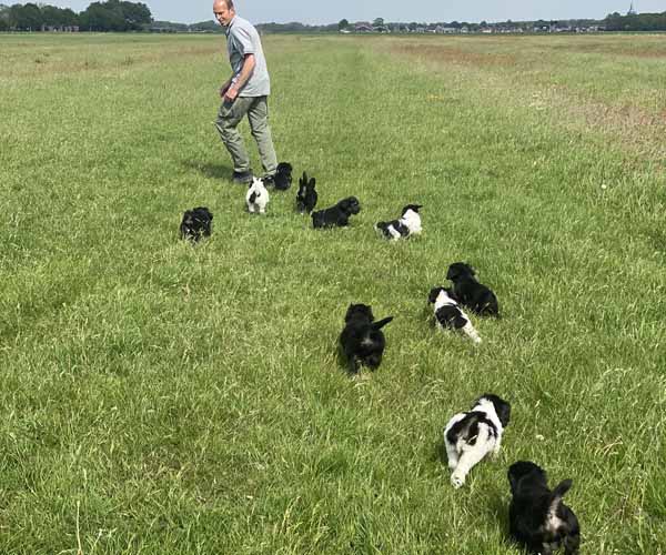 We krijgen vaak complimenten dat we onze puppen zoveel aanbieden en laten kennis maken met de buitenwereld voor ze het nest verlaten. Wij vinden dat echter onze taak als goede fokker. We hebben maar zo’n korte periode waarin ze alles wat ze meemaken met elkaar als vanzelfsprekend ervaren en daarmee creeren wij een stabiele basis voor de rest van hun leven. Dat is vooral voor herdershondjes extra belangrijk. Dus ja, wij zijn er enorm druk mee en het kost een berg energie maar onze puppenkopers plus de puppen zelf hebben er enorm veel profijt van! We doen het met liefde……