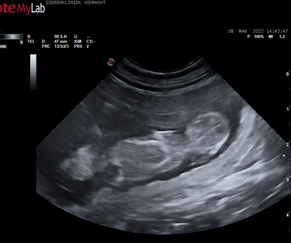 8 maart 2022 is een feestelijke dag want de echo wijst uit dat Puk puppen verwacht van Niebo! We zijn echt heel blij want het was best een hele lange rit naar Frankrijk en nu blijkt dat die reis niet voor niets is geweest. Yes!