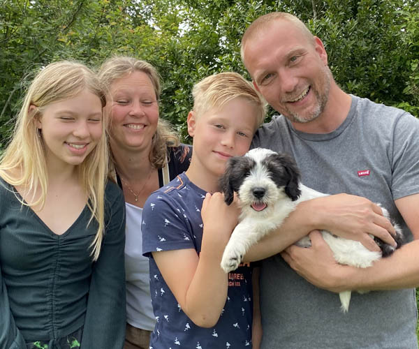 Alpaga wordt nu Nina genoemd. Wat een mooi moment was dat toen dit gezin mocht vernemen dat een van de puppen naar hen toe mocht verhuizen. Nina wensen we een mooie toekomst en dat zal vast gaan lukken bij Joleen en Annamelia zo lekker dicht bij het strand! Alle geluk met elkaar!